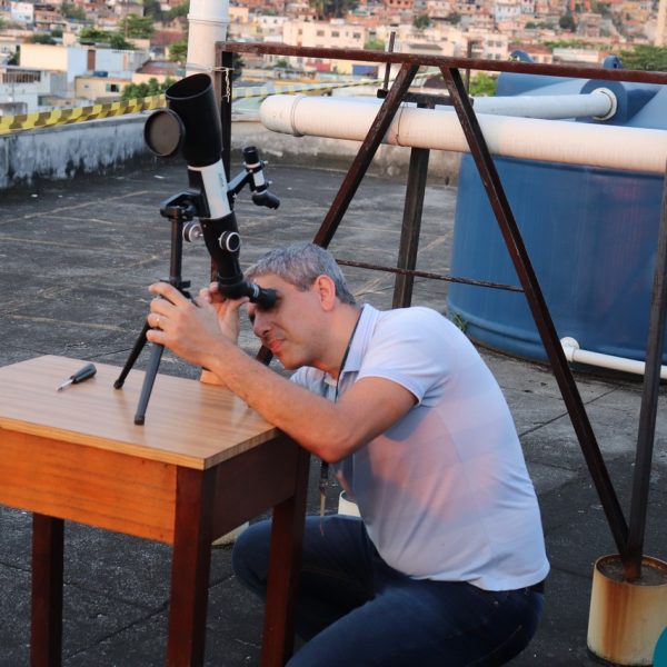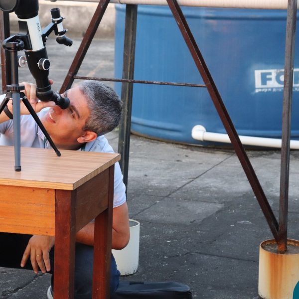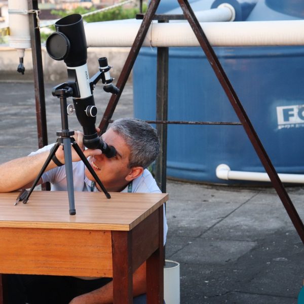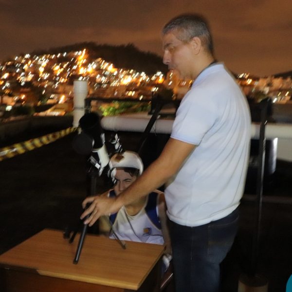 Atividade de observação do céu, com os alunos do 9º AE realizado na Escola. Essa atividade buscou a popularização da astronomia e a preparação dos alunos para os trabalhos que serão apresentados na mostra cultural, “Pio XII Portas Abertas”.