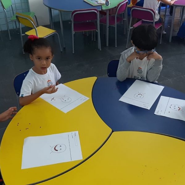 O Pré II / Manhã explorou as partes do corpo humano através de uma atividade de recorte e colagem. Concentrados e atentos, desenvolveram muito bem o que foi proposto.