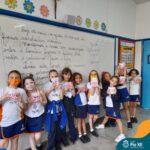 Quando acabamos, todos realizaram um lindo texto coletivo, respeitando as regras trabalhadas.
