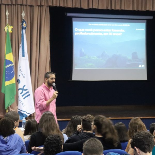 O segundo dia da “Semana Vocacional e Feira de Profissões” foi de muita troca de saberes, palestras e oficinas. Recebemos o professor Victor Freitas e a Professora Ana Lúcia Guimarães que abordaram em suas falas temas relevantes para a vida profissional de cada um de nossos alunos: as futuras profissões e as novas competências e habilidades. Em seguida, os alunos visitaram os standes das universidades Univeritas, Unisuam, IBMR e Estácio, e participaram de diversas oficinas oferecidas pela Ed. Moderna.