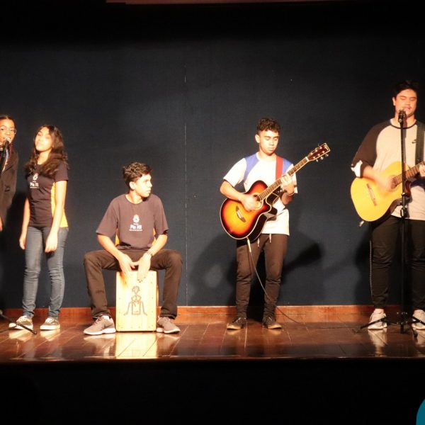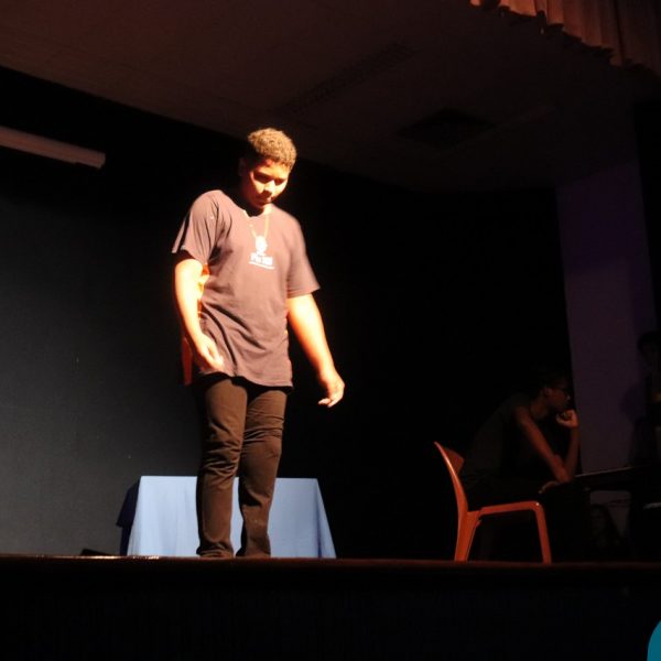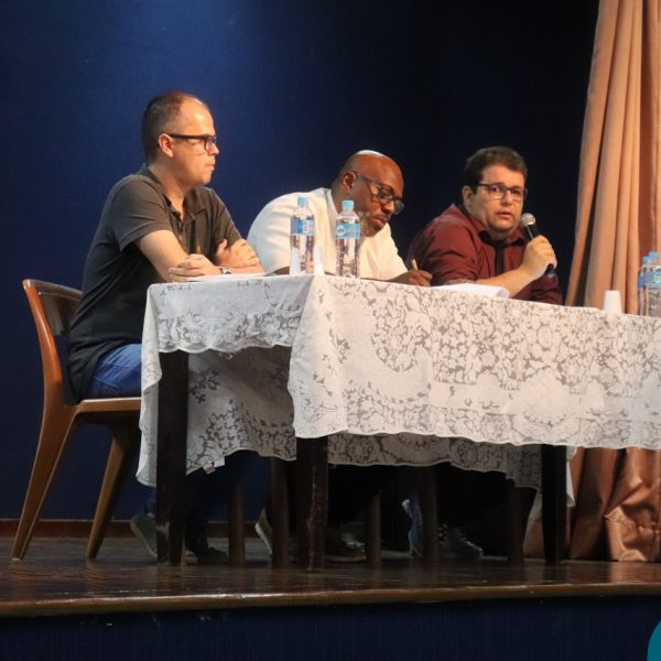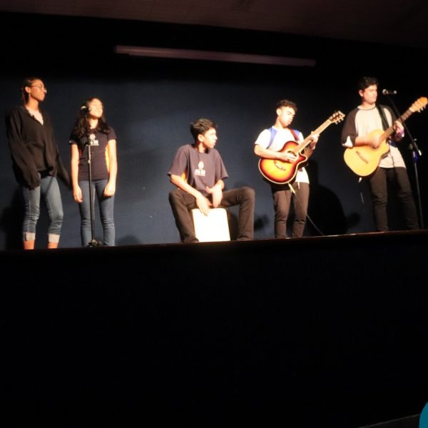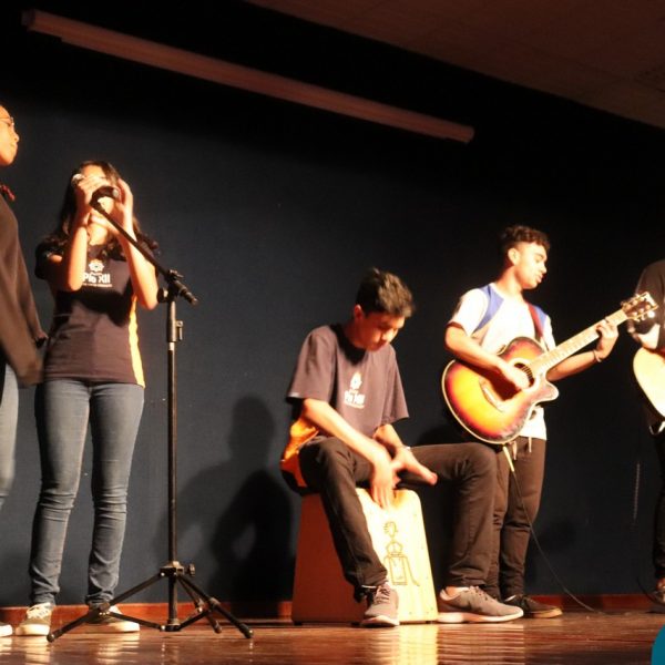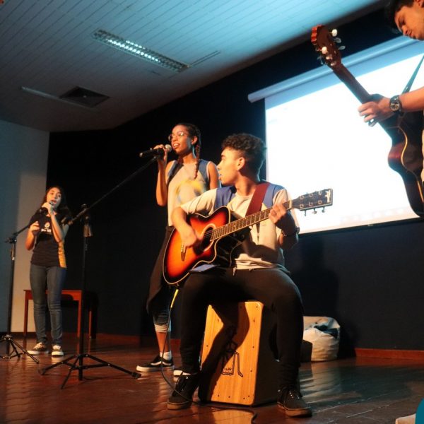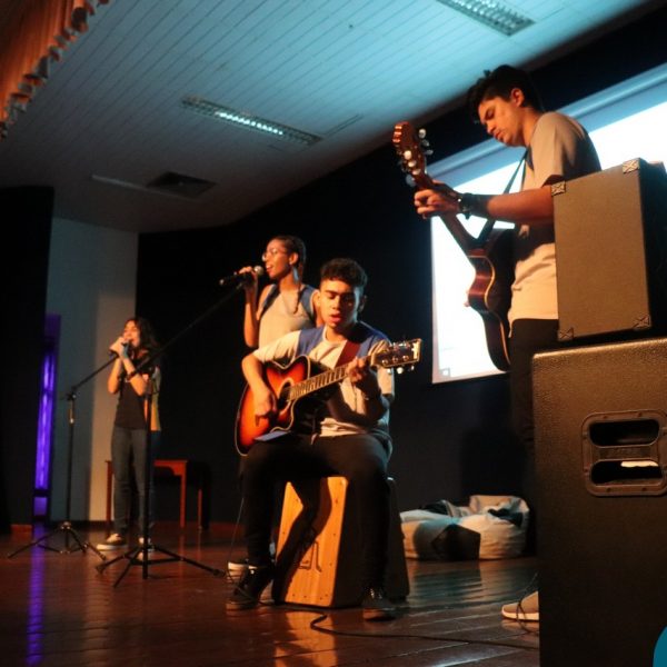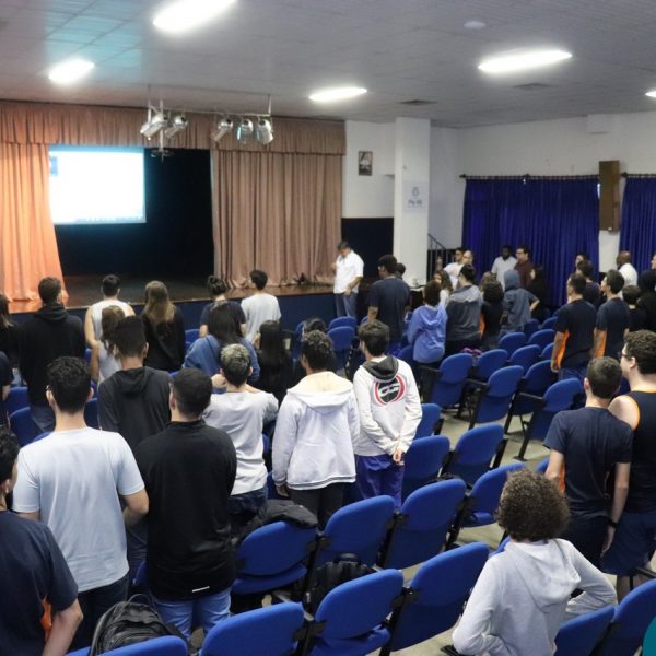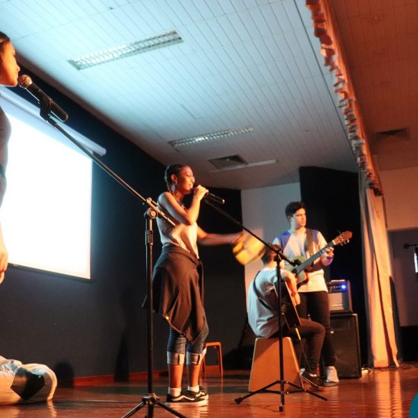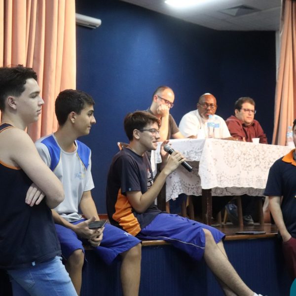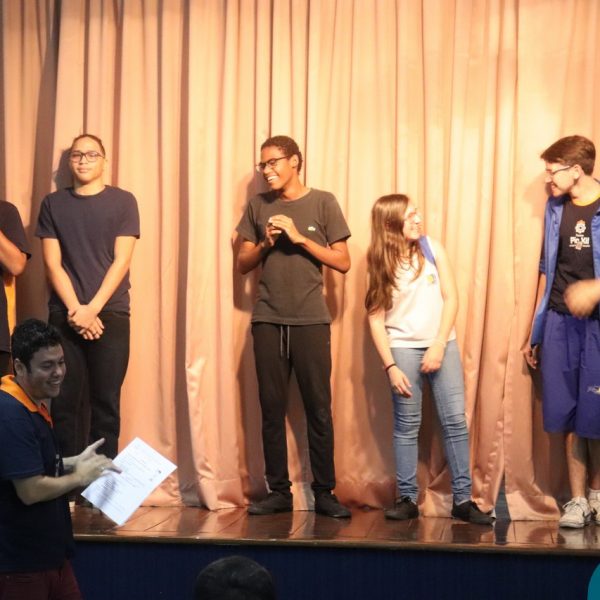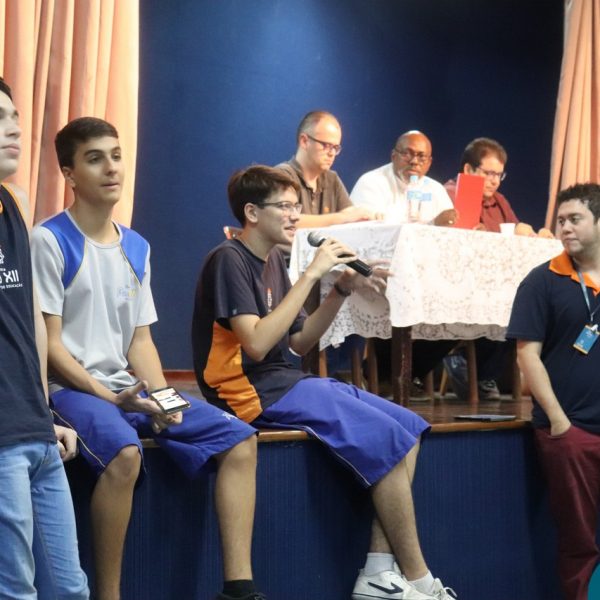 A Semana Vocacional e Feira de Profissões começou com muita arte e reflexões. Tivemos, nesse primeiro dia, uma apresentação teatral com o titulo ” Ser ou não Ser”; apresentação de música com os alunos do Ensino Médio; e uma “Mesa Redonda”:composta pelos professores Edson, Marcelo, Jorge e o Padre Geraldo. Os convidados para o debate realizaram diversas provocações para dinamizarem o momento: Que jovem é você? Como lidar com as pressões familiares e sociais no processo da escolha profissional? Como conciliar aptidão e realização com escolha profissional?