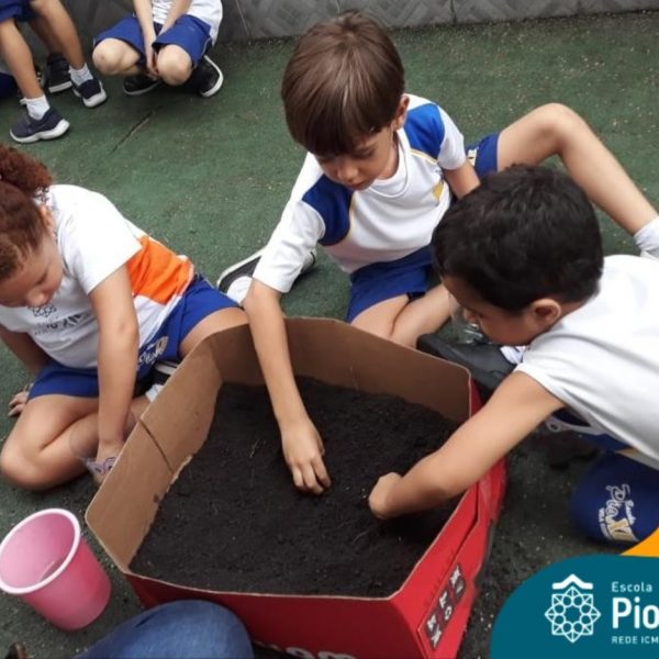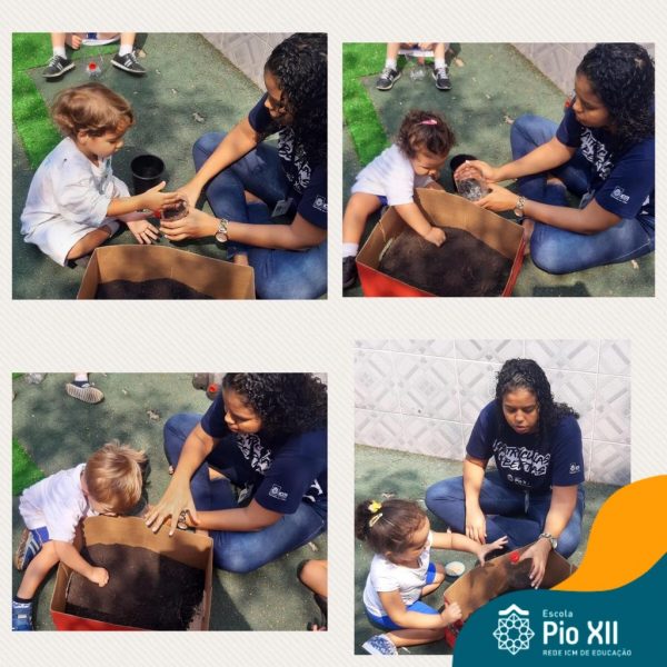 As Turminhas da Educação Infantil, Manhã e Tarde, visitaram a horta da nossa Escola para uma atividade muito divertida: realizaram o plantio de algumas sementes de alpiste e conversaram sobre a importância de cuidarmos da nossa natureza.