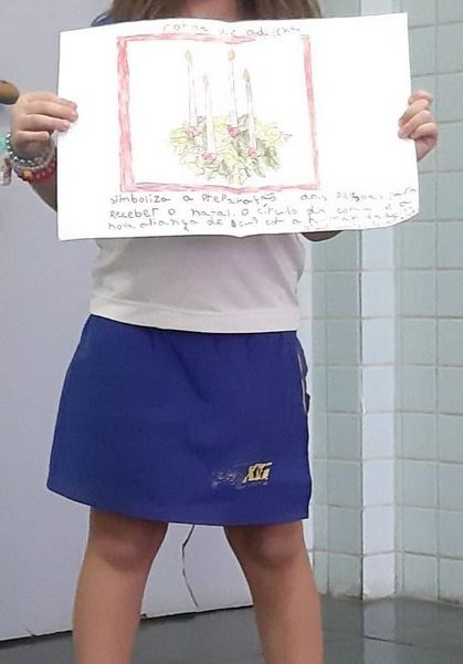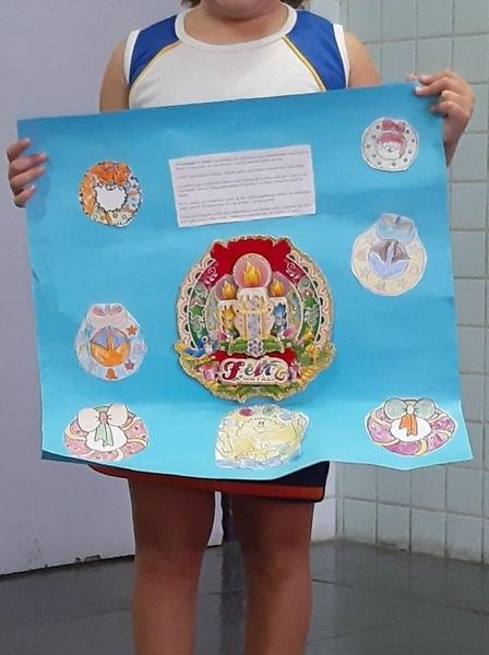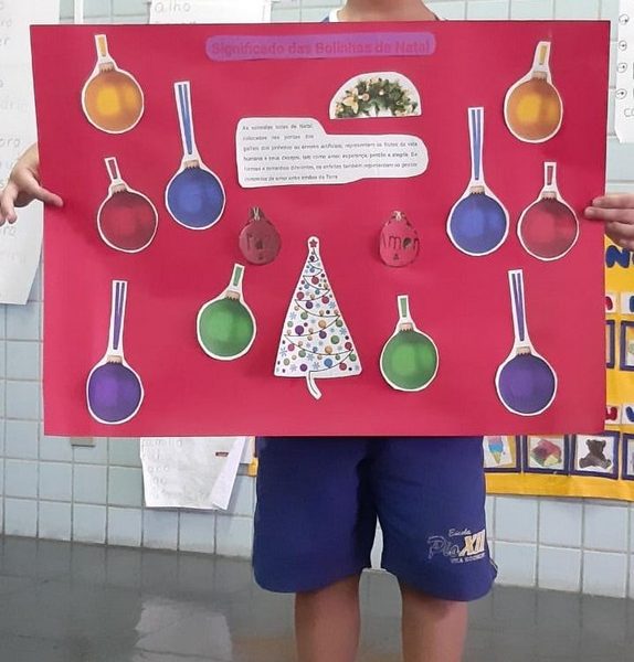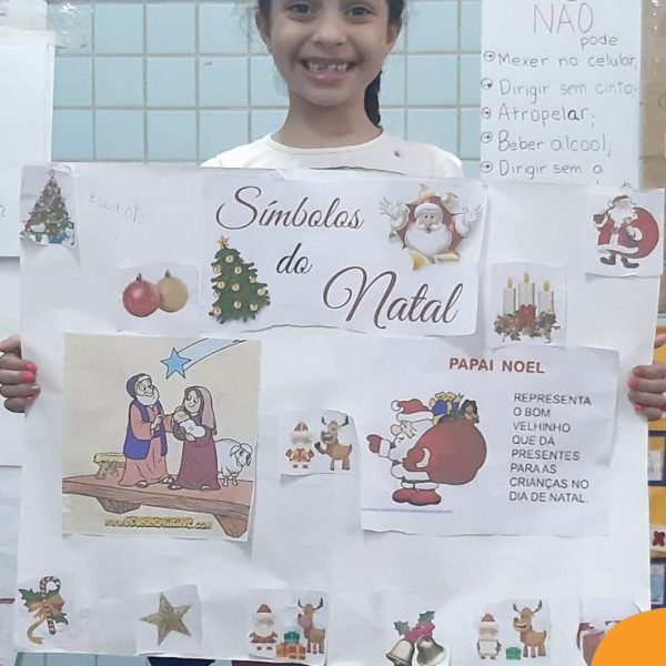 Os alunos do Nível III, juntamente com os seus familiares, confeccionaram lindos cartazes sobre os diversos símbolos natalinos e seus significados. Em sala, apresentaram para a sua professora o belo trabalho desenvolvido.