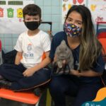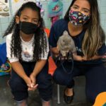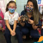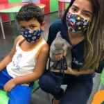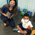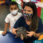 As Turmas do Pré I e II receberam visitas bem especiais. Para dinamizar o aprendizado sobre os Animais do Meio Ambiente, interagiram com diversos animais: peixe, coelho e uma jabuti. Nesta atividade, observaram as características de cada um, habitat e alimentação. Após os momentos de interação, para a escolha do nomes do “mascote” da Turma (dois peixes), realizaram uma votação. Com isso, foi integrado à rotina, o momento de observação e registro sobre o comportamento dos peixes.