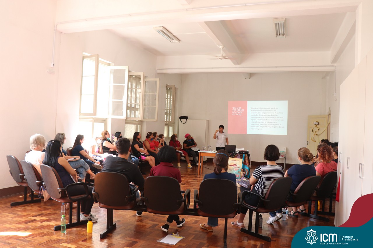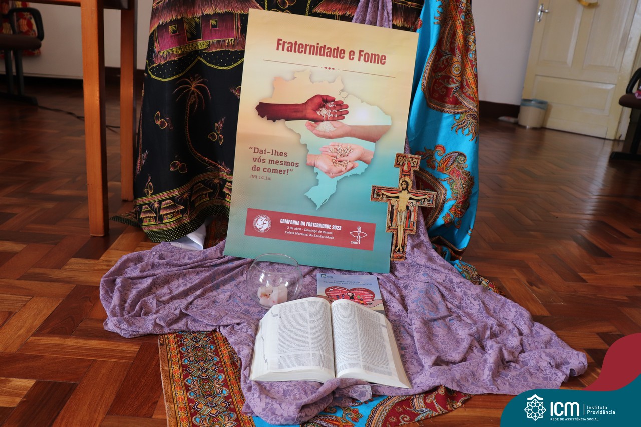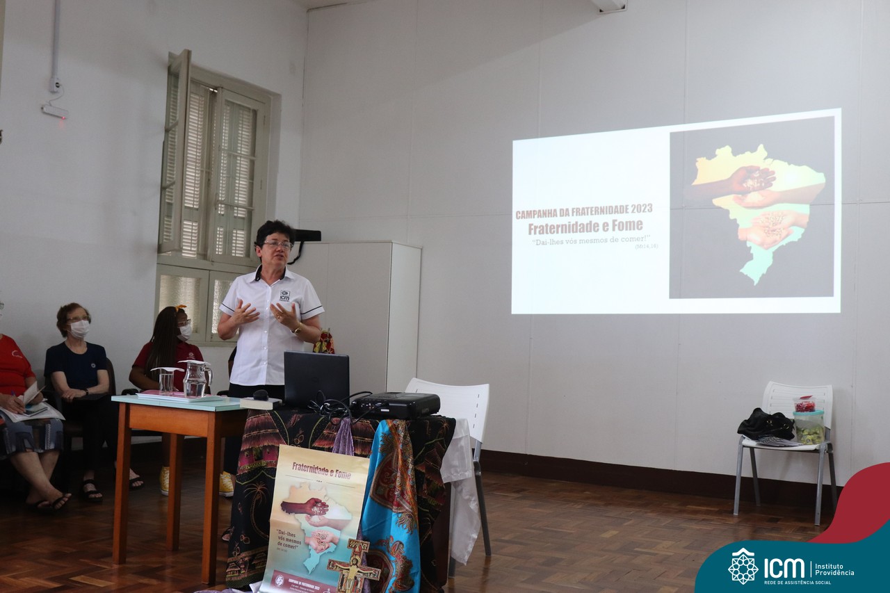 Contamos com a presença da Irmã Maria Bernardete Macarini, coordenadora do Setor de Assistência Social da Rede ICM, que nos trouxe informações da Campanha da Fraternidade 2023 que este ano aborda o tema Fome como lema “Dai-lhes vós mesmos de comer” e partilhou conosco a importância de trazer esses temas para pauta entre nós e com nosso público atendido.
