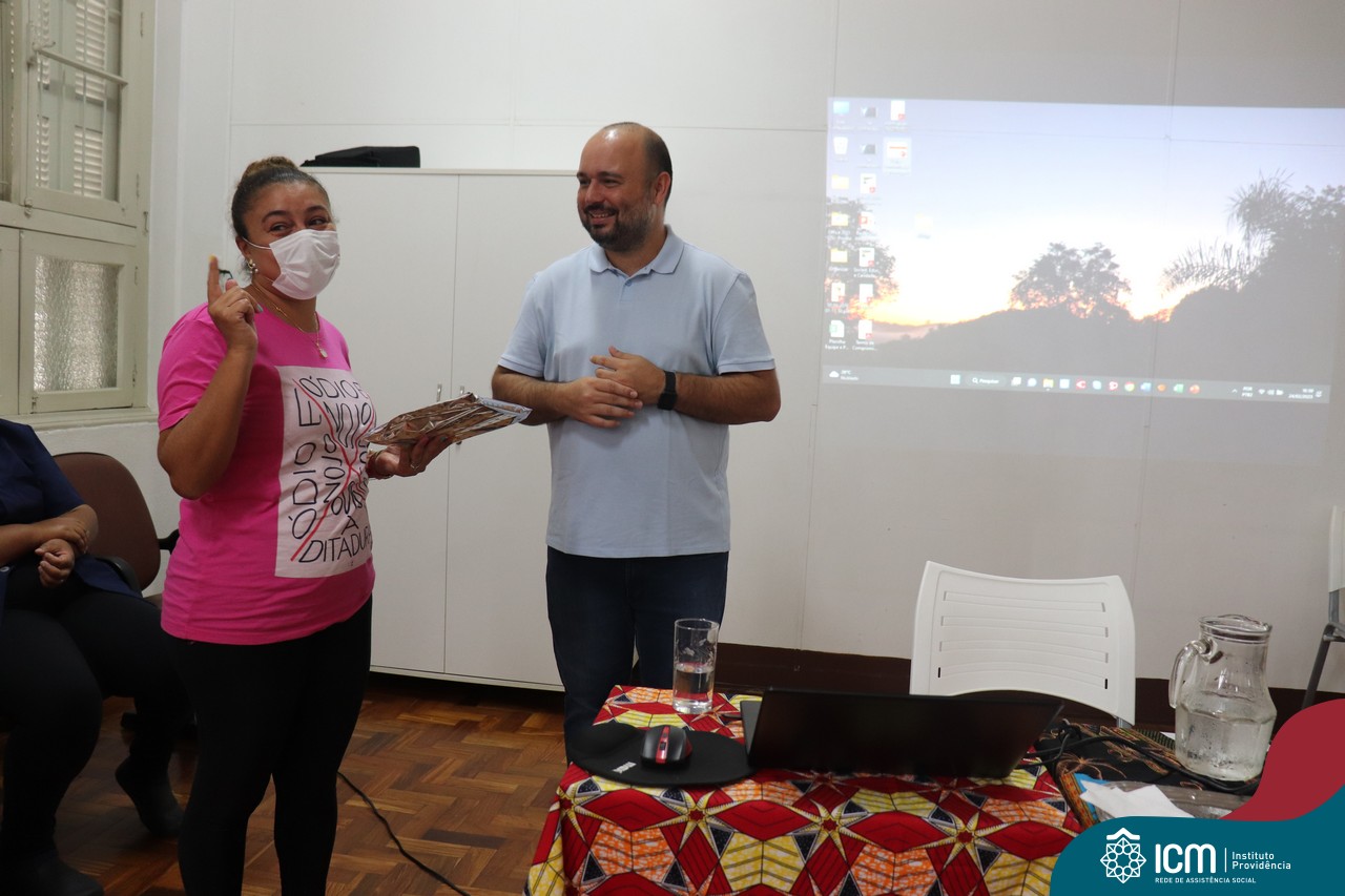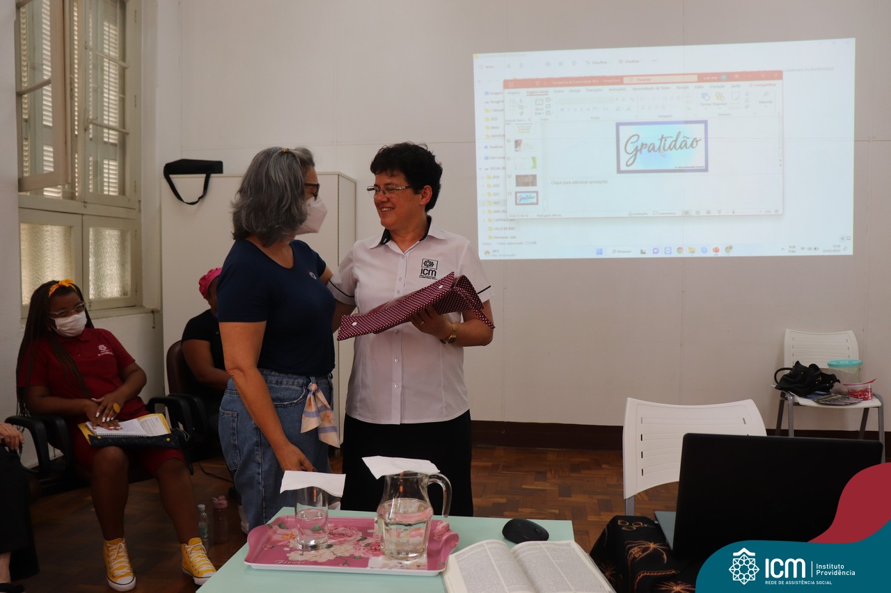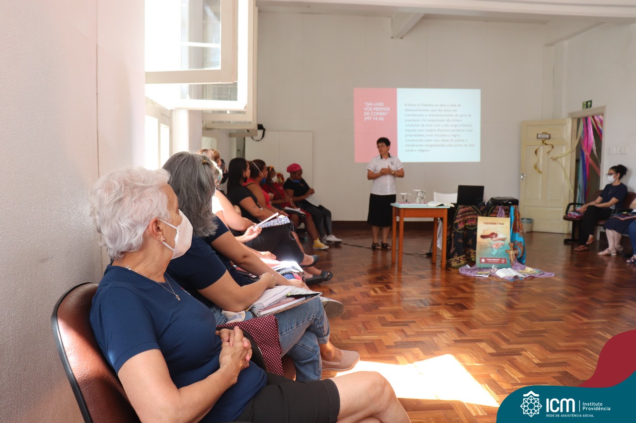 Contamos com a presença da Irmã Maria Bernardete Macarini, coordenadora do Setor de Assistência Social da Rede ICM, que nos trouxe informações da Campanha da Fraternidade 2023 que este ano aborda o tema Fome como lema “Dai-lhes vós mesmos de comer” e partilhou conosco a importância de trazer esses temas para pauta entre nós e com nosso público atendido.