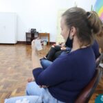 Num segundo momento a equipe técnica teve uma preocupação em cuidar da saúde mental dos educadores, promovendo uma roda de conversa com perguntas e respostas usando o jogo “puxa conversa”.