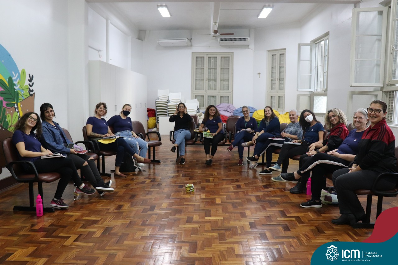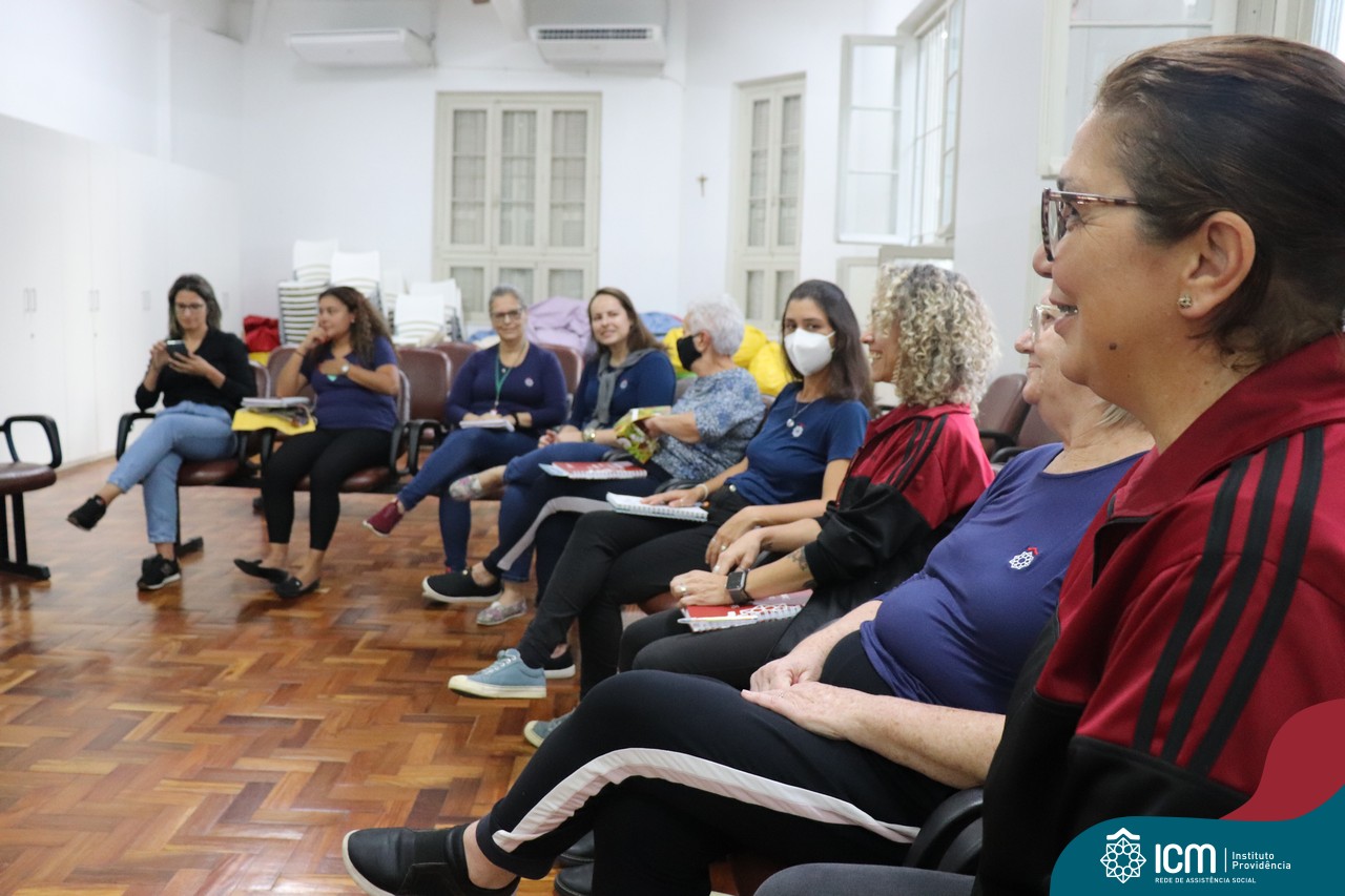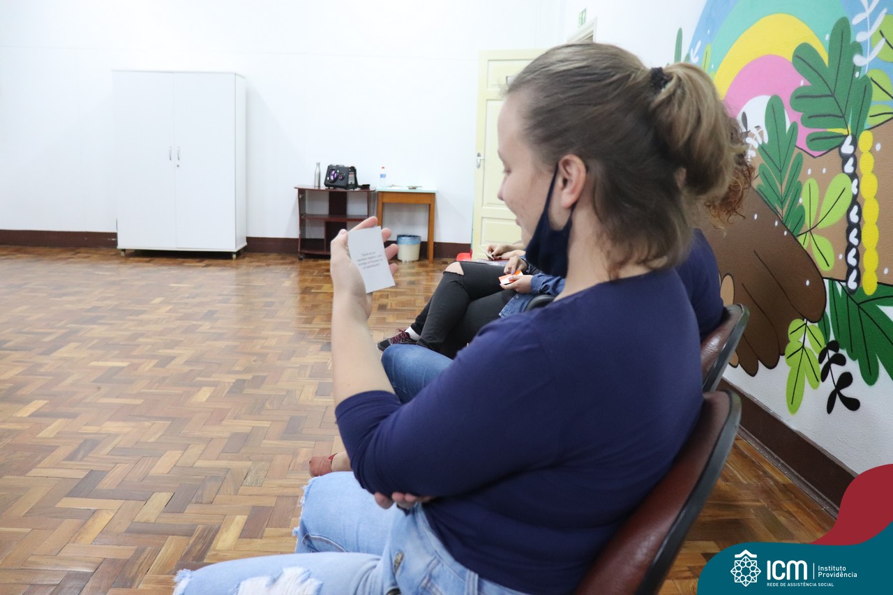 Num segundo momento a equipe técnica teve uma preocupação em cuidar da saúde mental dos educadores, promovendo uma roda de conversa com perguntas e respostas usando o jogo “puxa conversa”.