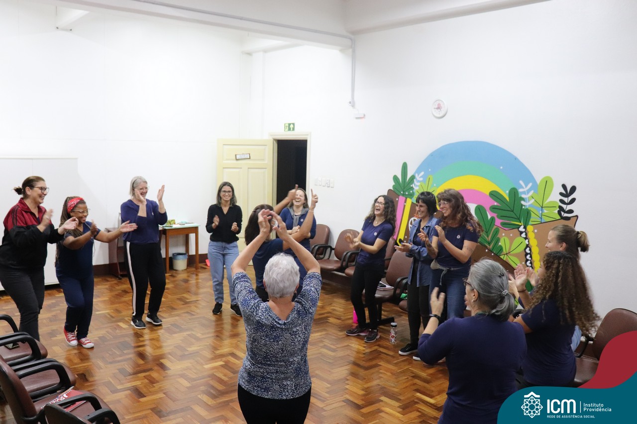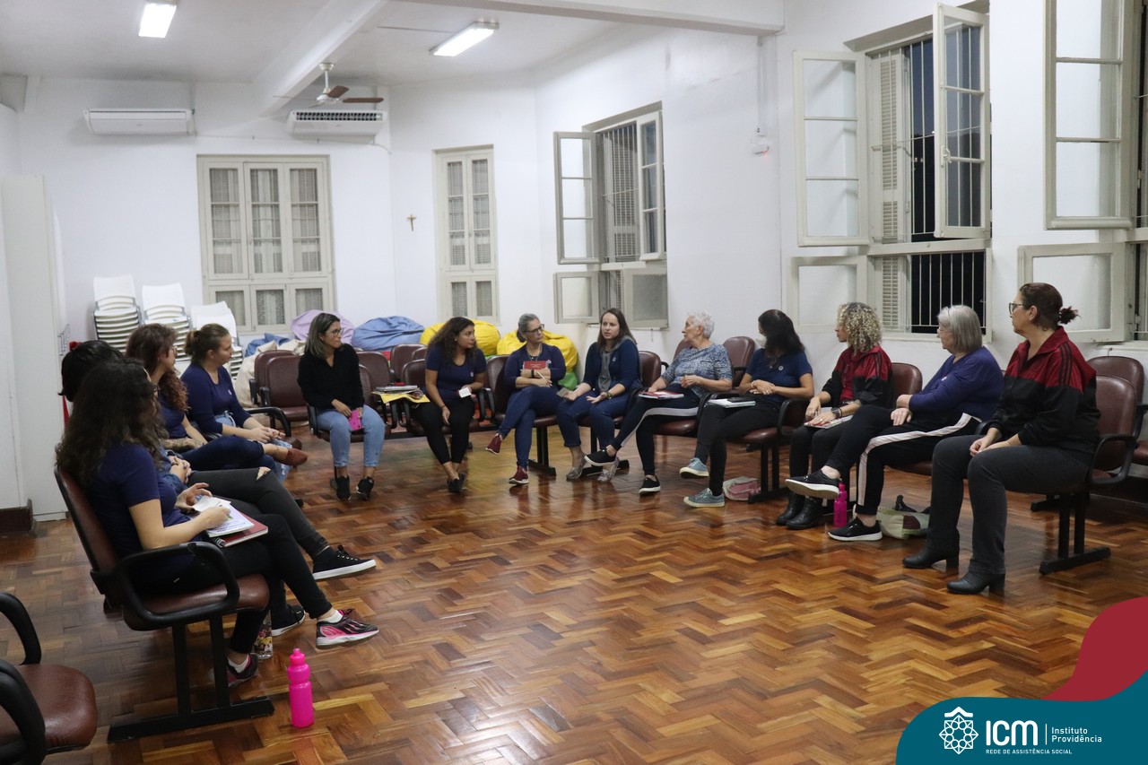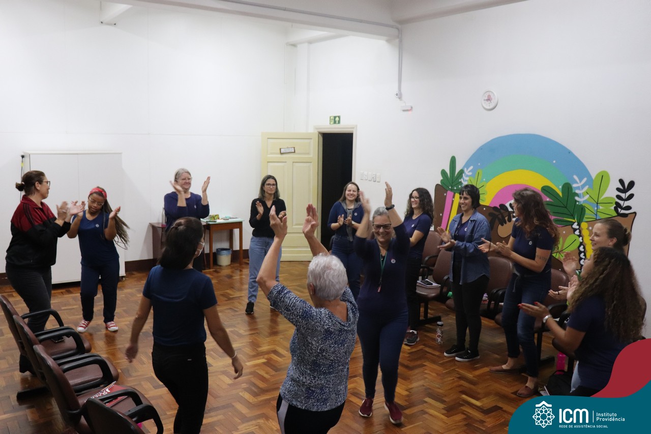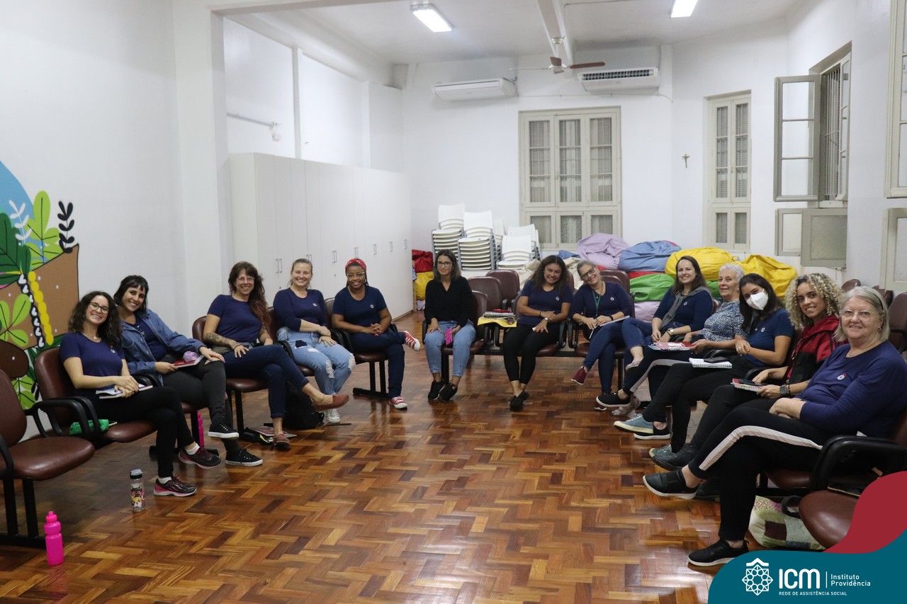 Num segundo momento a equipe técnica teve uma preocupação em cuidar da saúde mental dos educadores, promovendo uma roda de conversa com perguntas e respostas usando o jogo “puxa conversa”.