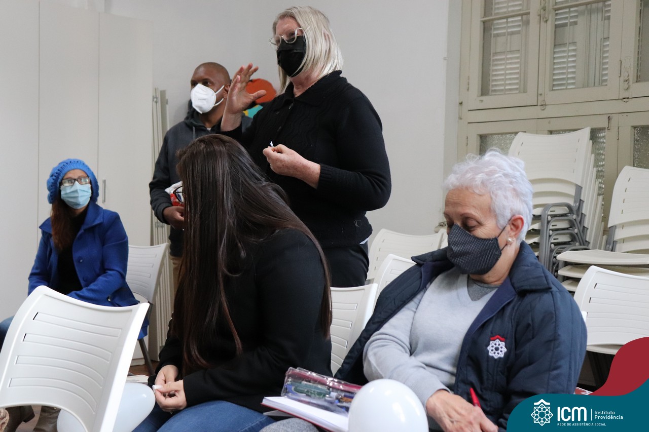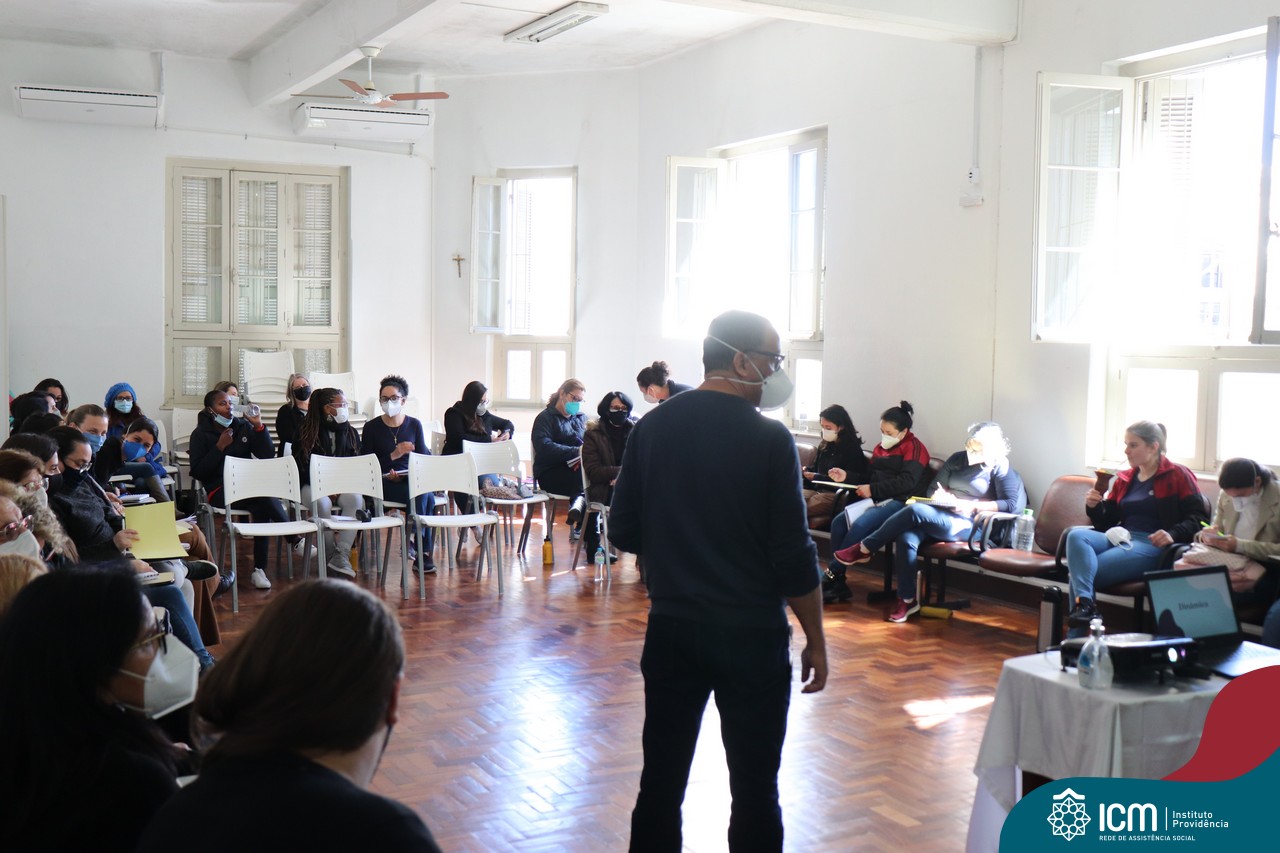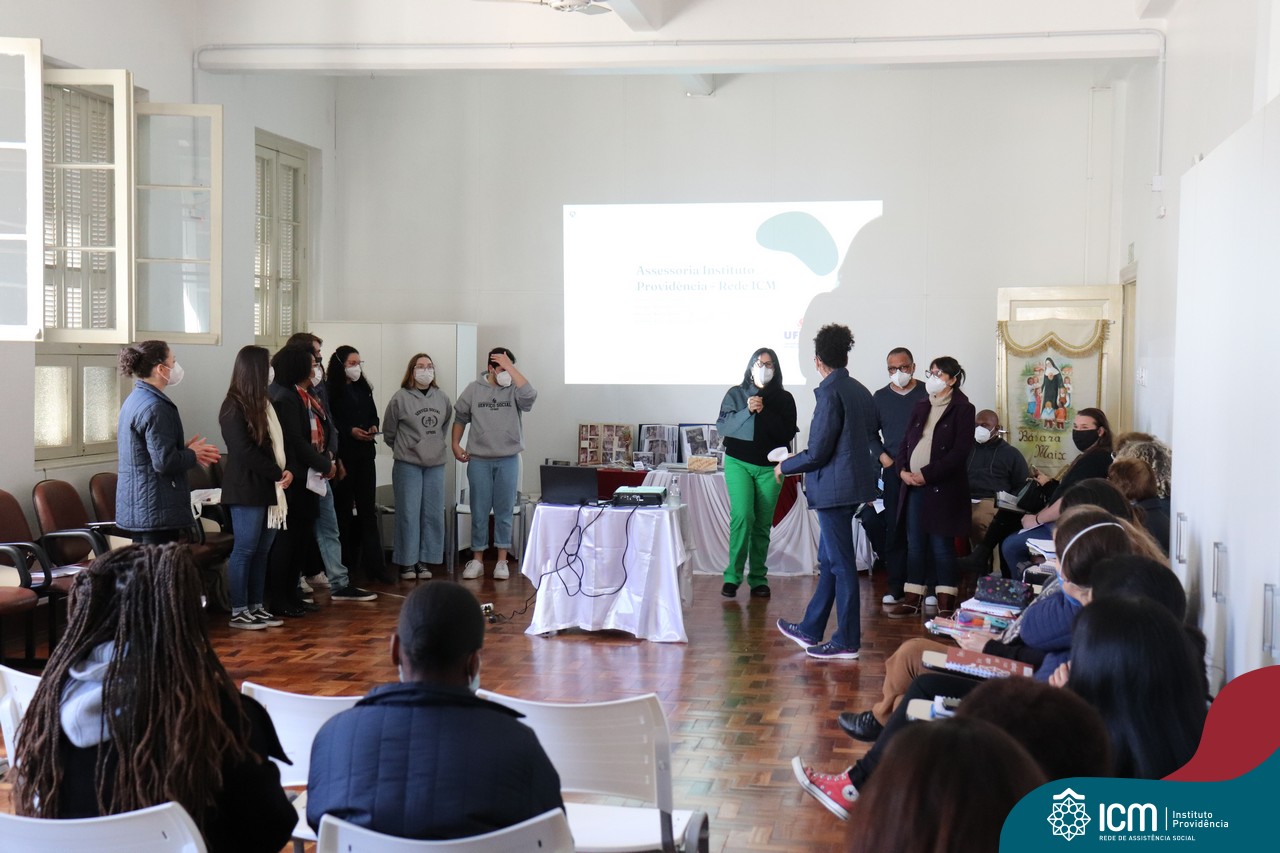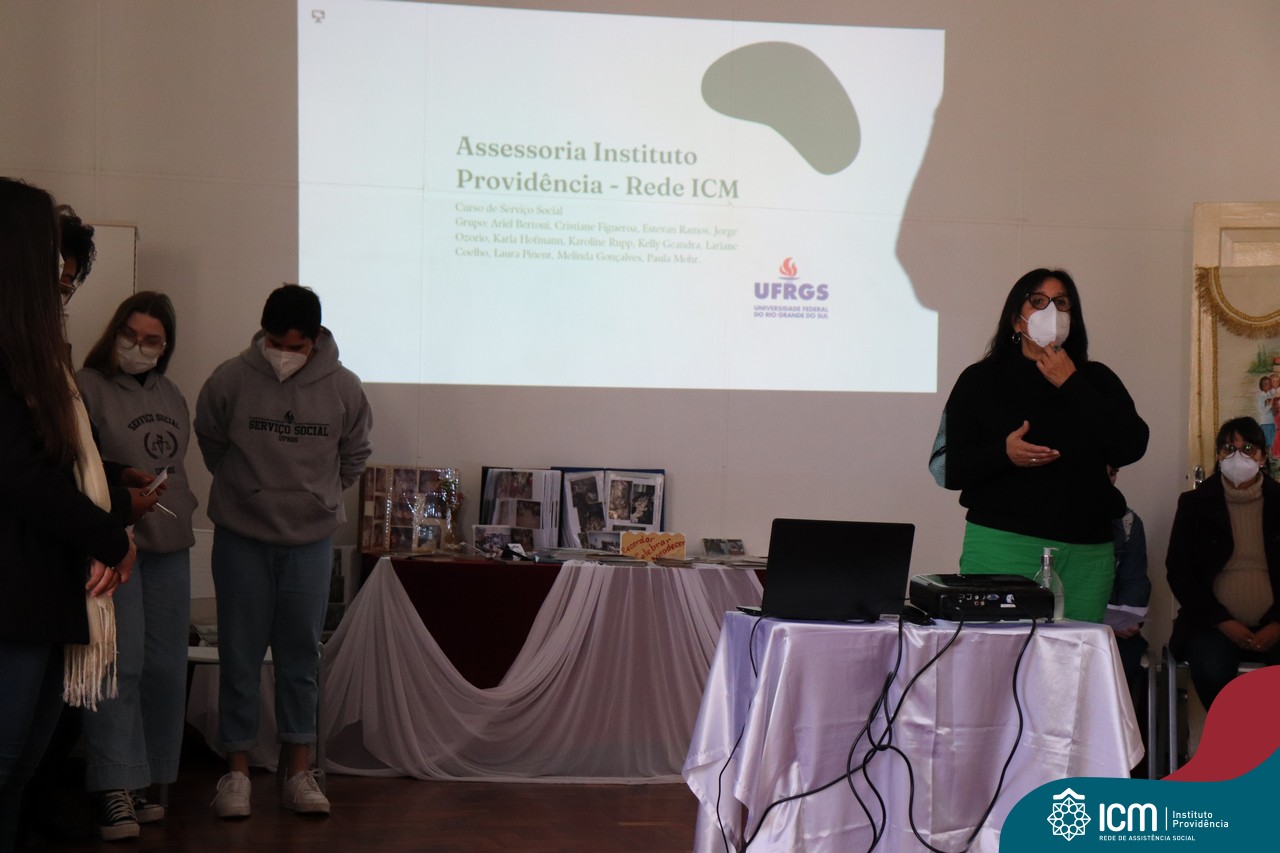 No turno da tarde, contamos com a presença dos alunos de Serviço Social da Universidade Federal do Rio Grande do Sul, juntamente com a Professora da disciplina Rosa Maria Castilhos, que prestaram assessoria ao grupo de colaboradores, na qual foram trabalhadas demandas institucionais traçando novas estratégias e possibilidades diante dos desafios apresentados.