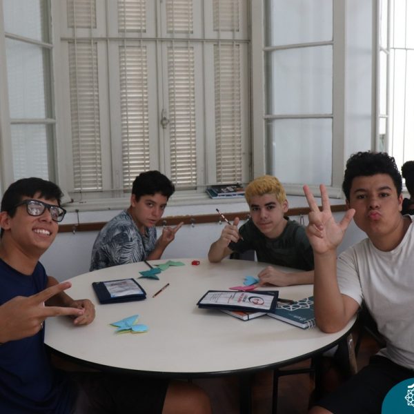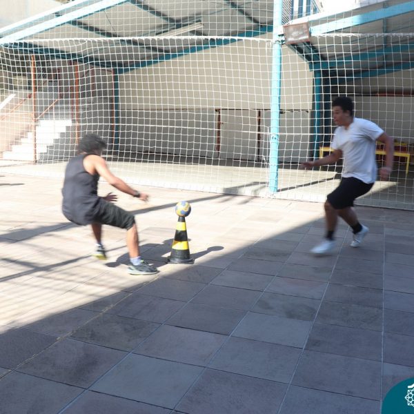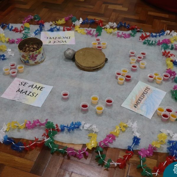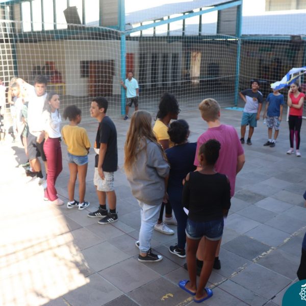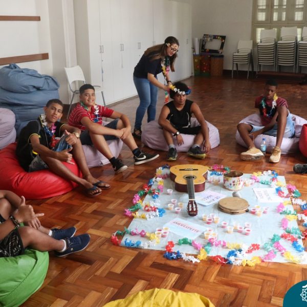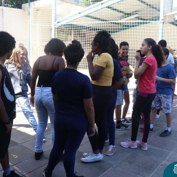 Para os grupos D, E e Trabalho Educativo a proposta de trabalhar a temática foi a partir da dinâmica do Jogo da Linha (inspirado no filme Escritores da Liberdade), onde os educadores faziam perguntas e aqueles que se identificavam, deslocavam-se até a linha. Em seguida, para descontrair brincaram de bola ao centro. O momento de integração possibilitou a diversão dos adolescentes e também o fortalecimento dos vínculos.