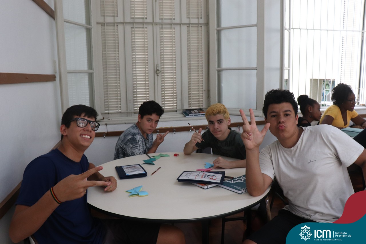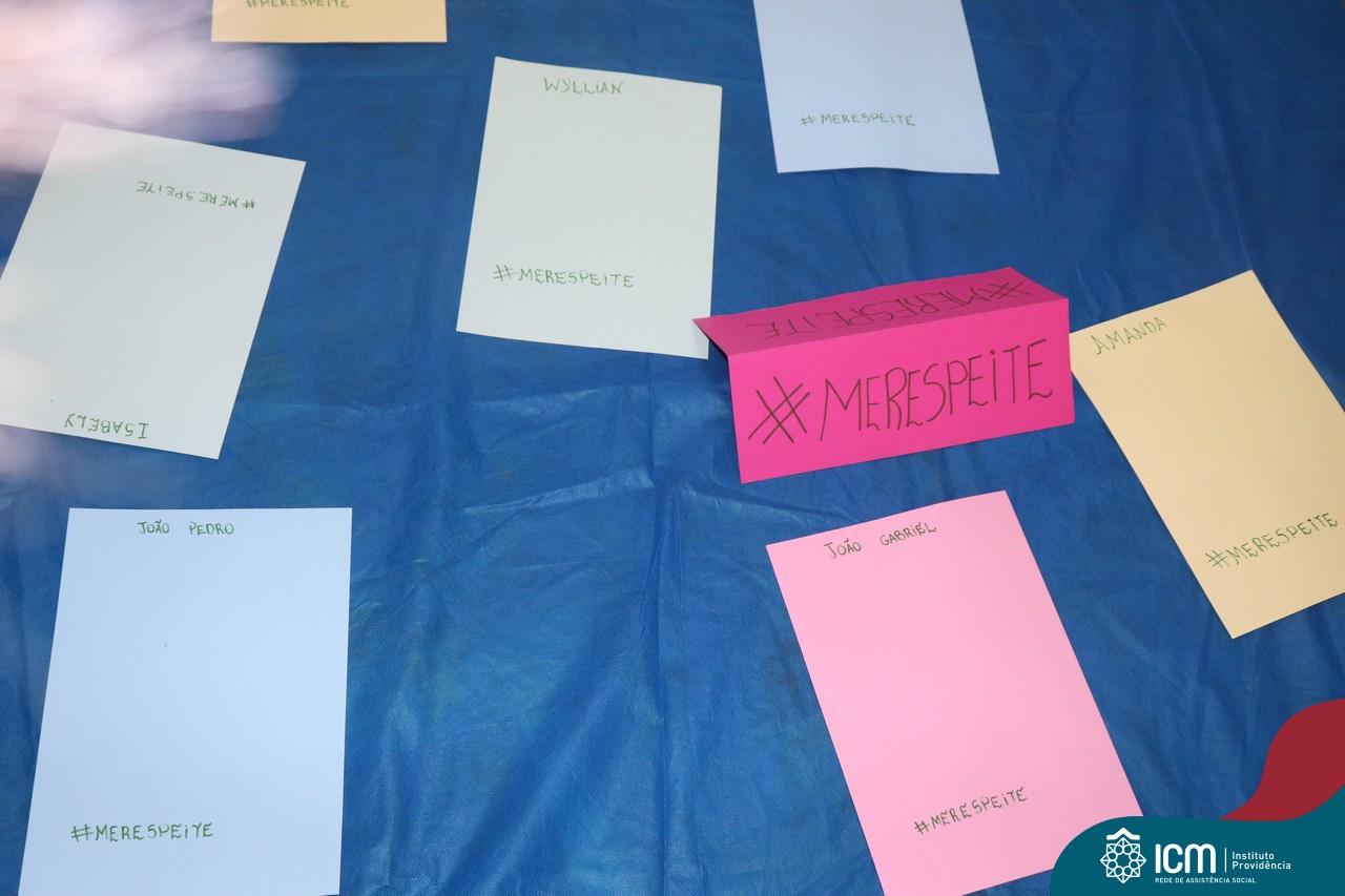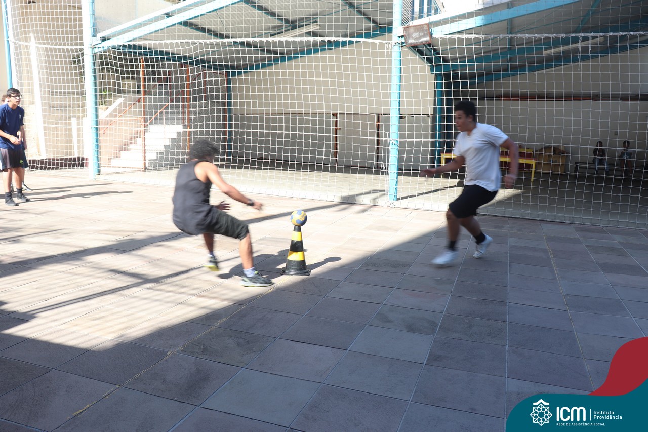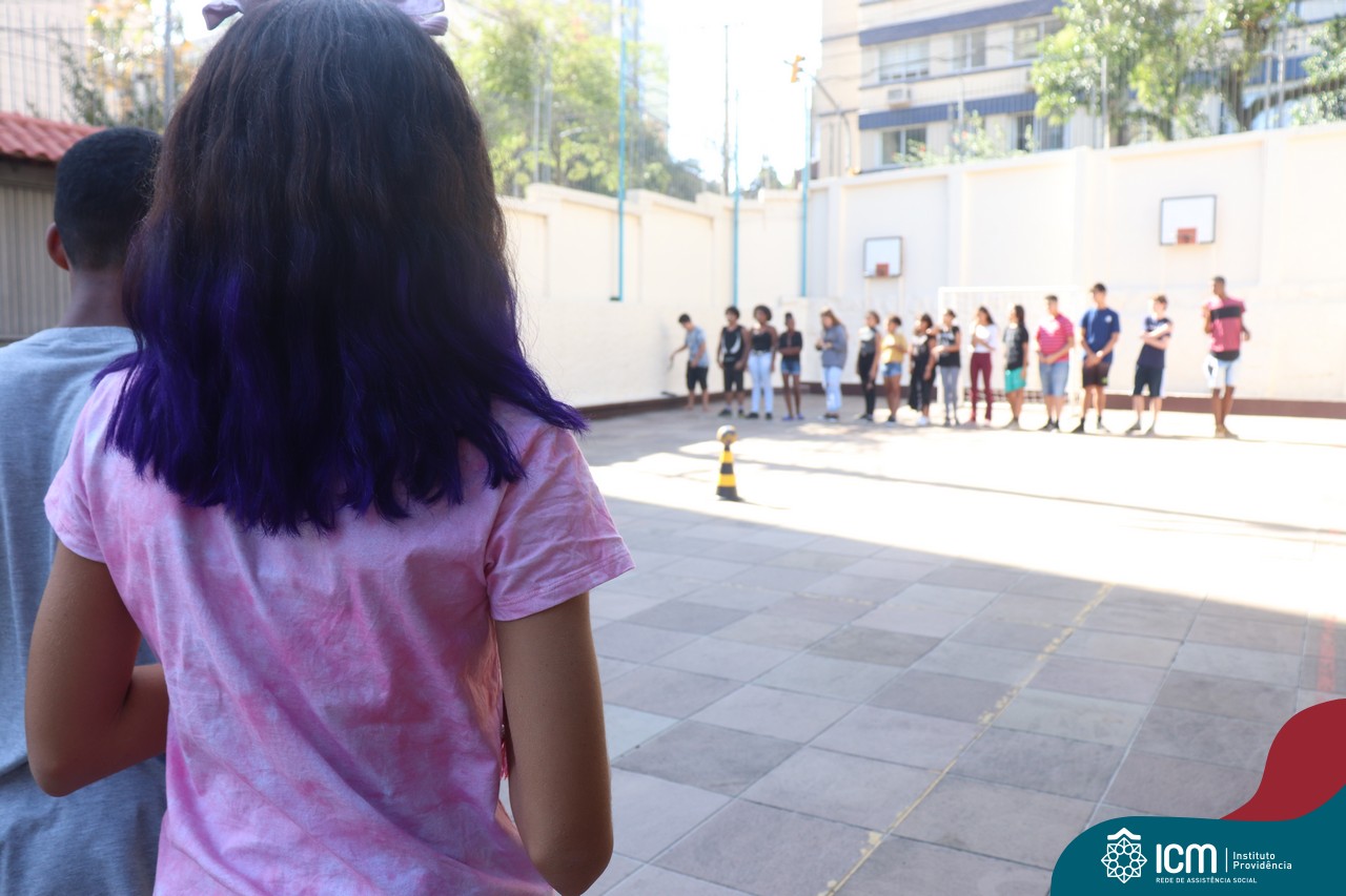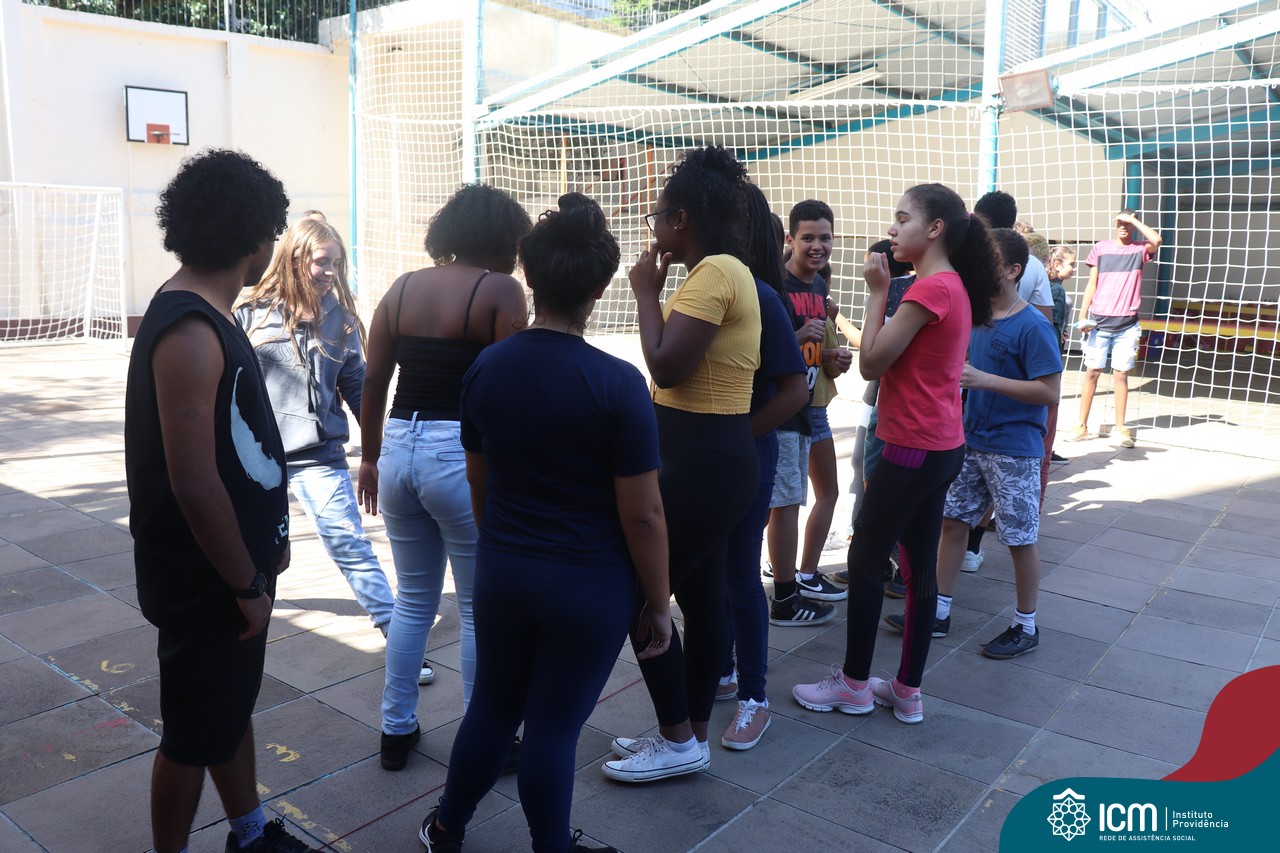 Para os grupos D, E e Trabalho Educativo a proposta de trabalhar a temática foi a partir da dinâmica do Jogo da Linha (inspirado no filme Escritores da Liberdade), onde os educadores faziam perguntas e aqueles que se identificavam, deslocavam-se até a linha. Em seguida, para descontrair brincaram de bola ao centro. O momento de integração possibilitou a diversão dos adolescentes e também o fortalecimento dos vínculos.