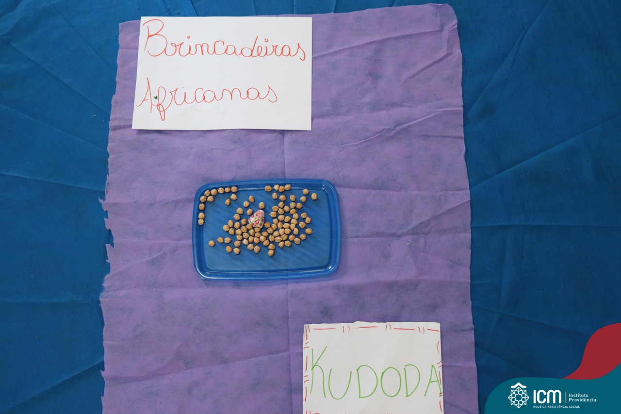 O tema foi “Brincadeiras Africanas”, as crianças jogaram Kudoda, onde todos sentaram em roda com uma vasilha com diversas bolinhas (feijão, bolinha de gude, pedrinhas, etc). Para iniciar a brincadeira o primeiro participante joga uma bolinha para cima e antes de pegar ela de volta, tenta pegar o maior número de bolinhas na vasilha. Quem tiver o maior número de bolinhas, ganha.
