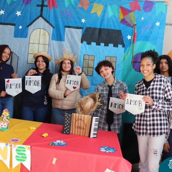 Festa junina com comidas típicas, brincadeiras e aniversariantes