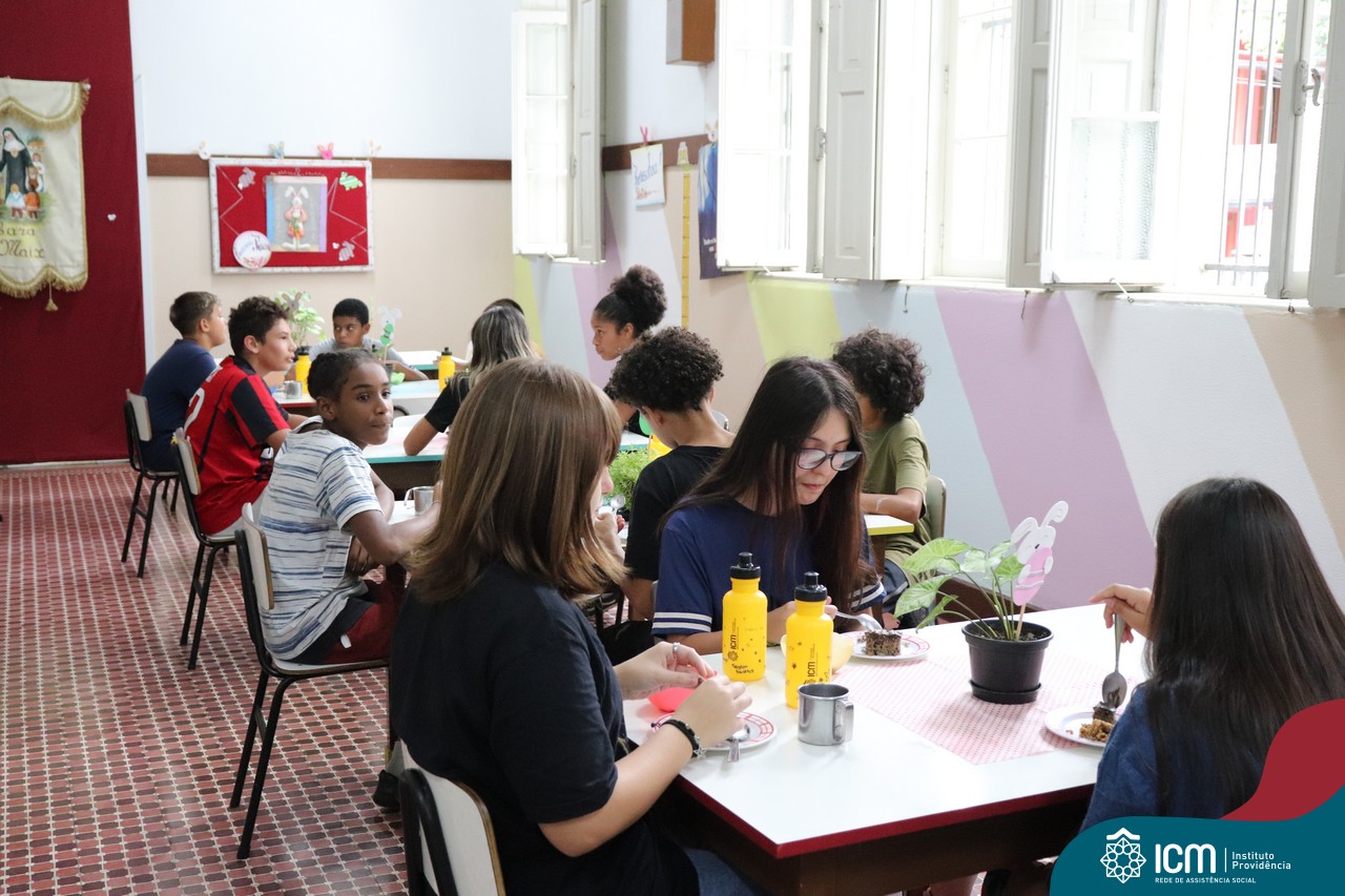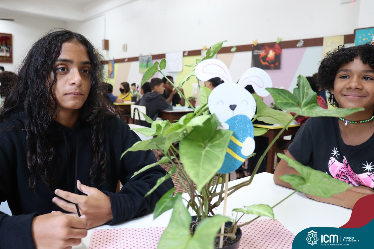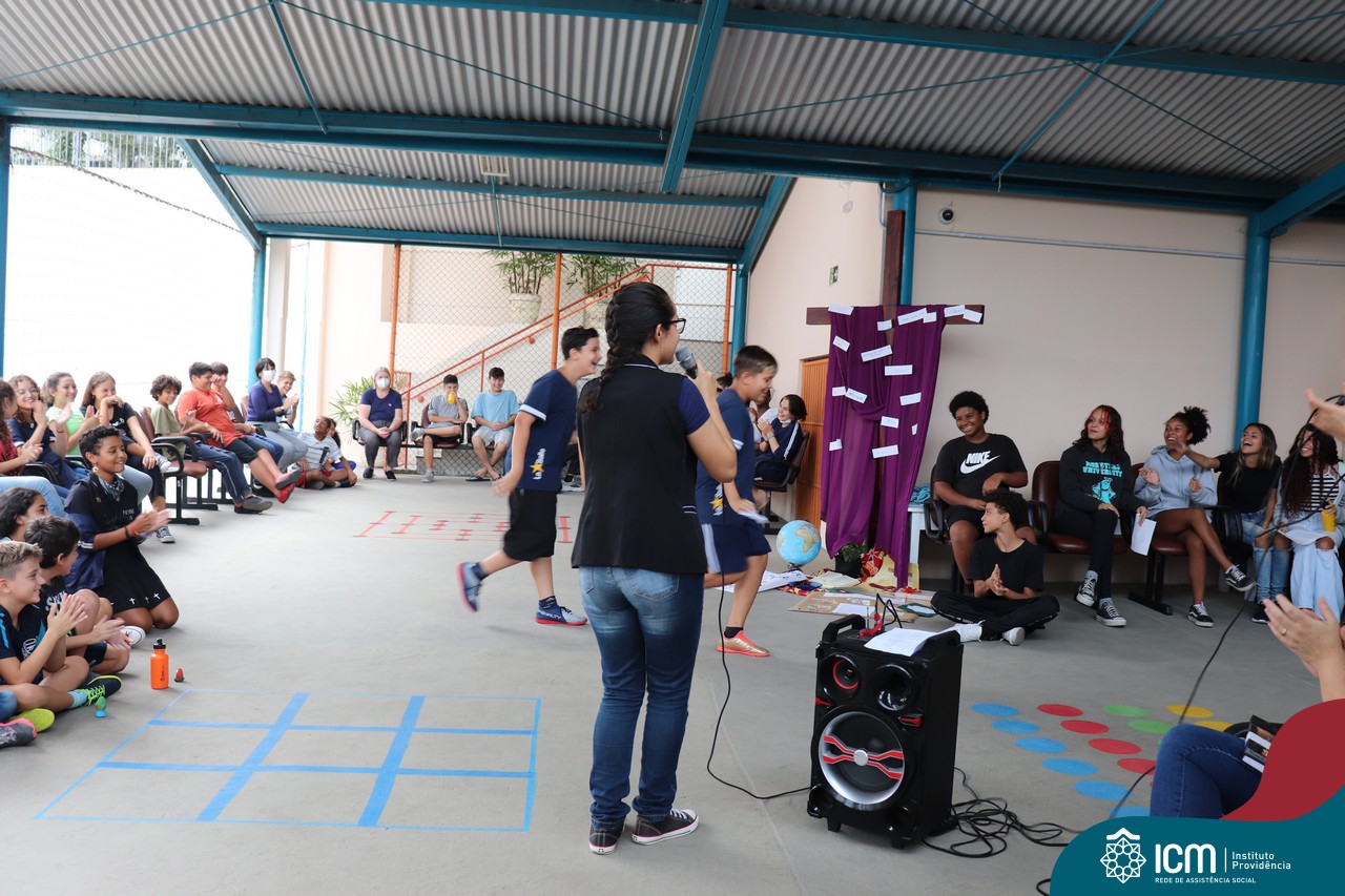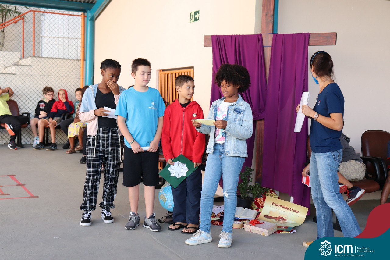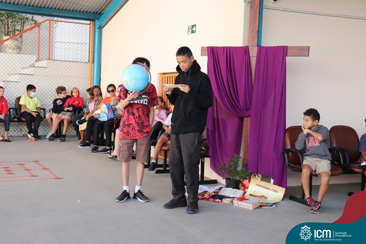 Os pais e responsáveis puderam contribuir de forma espontânea falando sobre realidades do mundo atual que entristece nossa celebração. Houve apresentação das crianças e adolescentes sobre símbolos que representam o momento de Páscoa. Tivemos um lanche especial e o refeitório foi enfeitado para a ocasião.