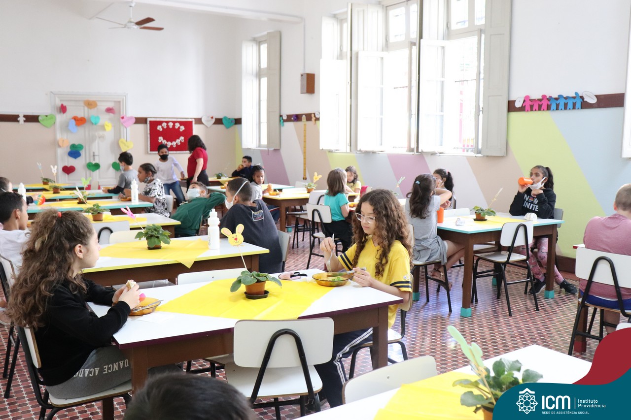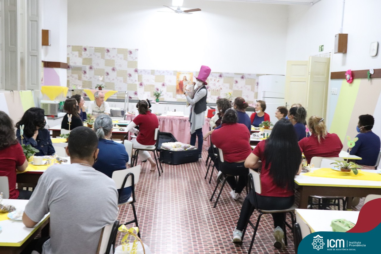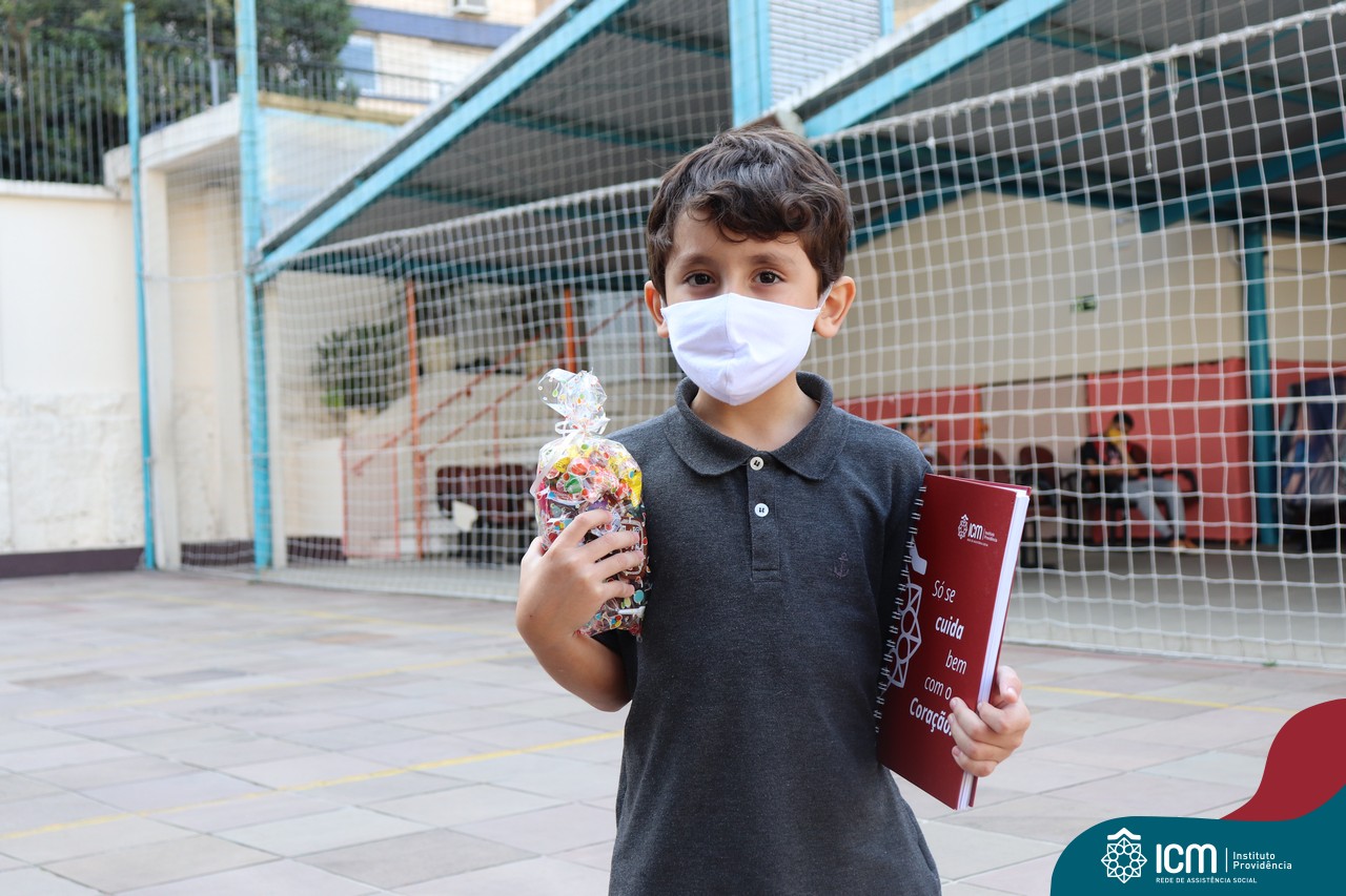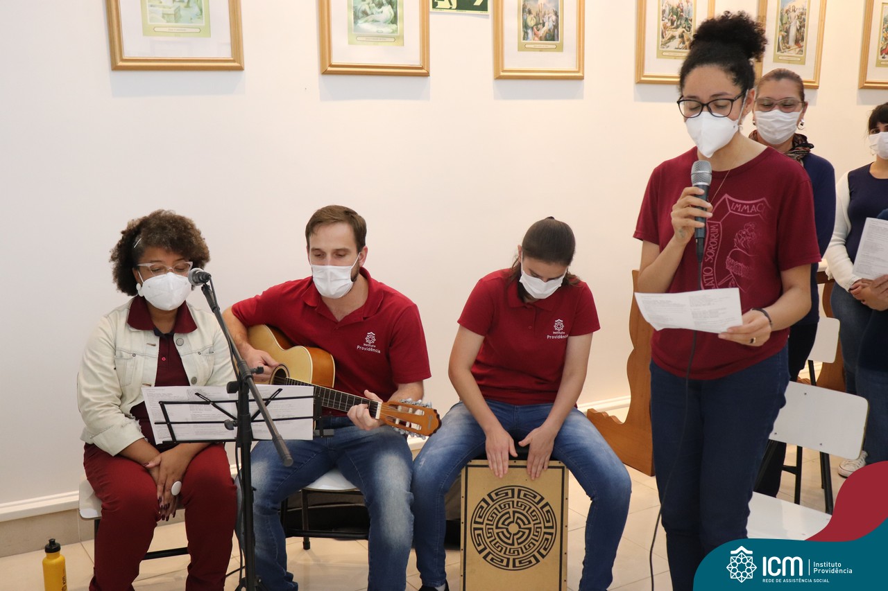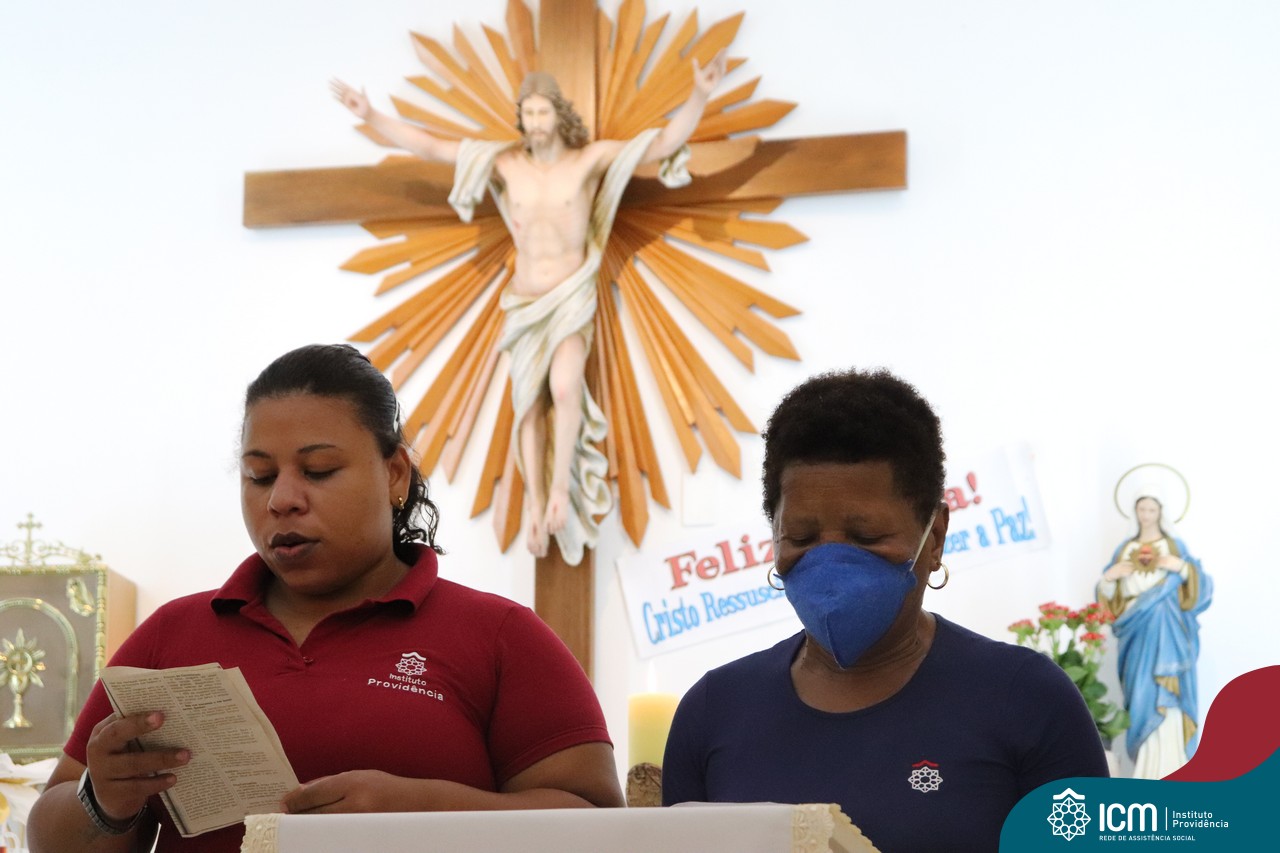 Neste ano a comemoração da Páscoa com as crianças e adolescentes do Serviço de Convivência e Fortalecimento de Vínculos foi realizada através de atividades com a Pastoral, a respeito do significado deste dia festivo e com um delicioso “salchipão”. Receberam também um mimo com doces e cadernos personalizados do Instituto Providência. A equipe de colaboradores esteve reunida para uma Celebração Eucarística, presidida pelo Frei Ivo Bortoluz (Ordem dos Carmelitas Descalços) e confraternizou em clima de alegria pascal.