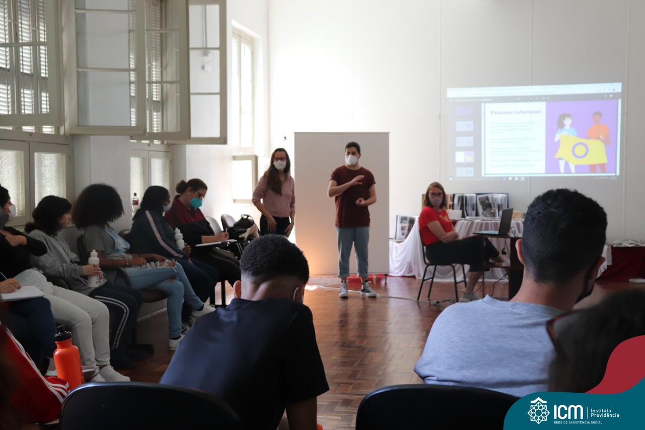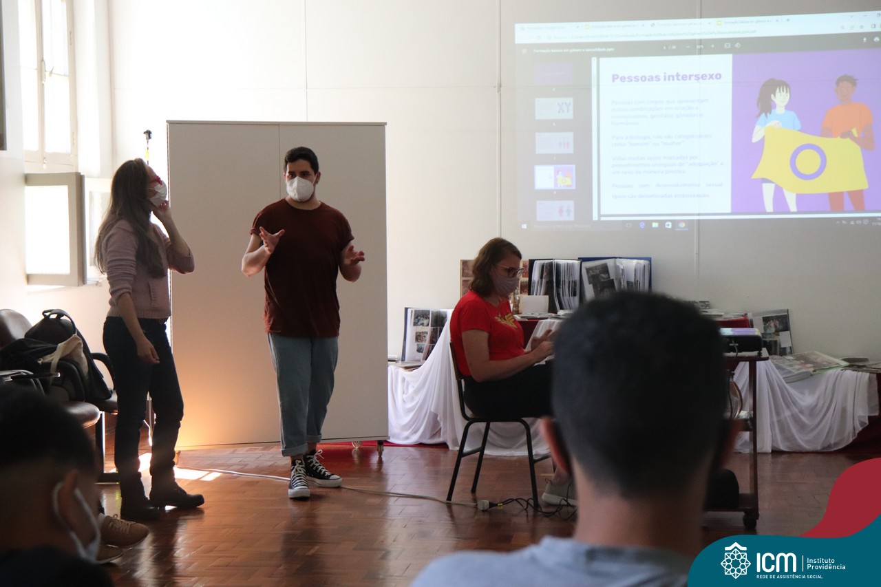 Na primeira parte refletiu-se junto aos jovens sobre os conceitos básicos de gênero e sexualidade, além de discutir os direitos da população LGBTQIA+ e os desafios ainda encontrados para essas pessoas.
