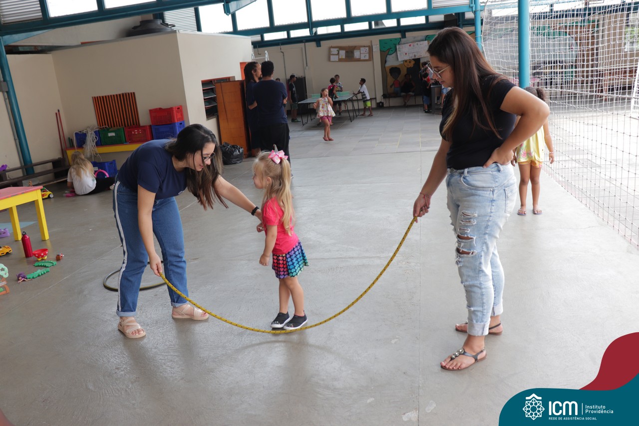 Em seguida, foi momento de se divertir e brincar com as propostas dirigidas pelos educadores, como torneio de nilcon, circuito de atividades físicas e brincadeiras livres.