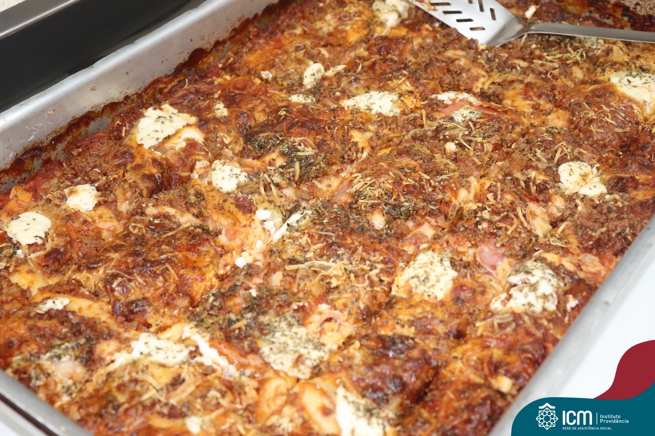 Para finalizar este dia especial, a equipe da cozinha preparou um delicioso almoço, com opções diferentes de lasanhas (vegetariana, frango e carne) para atender a todos os gostos.
