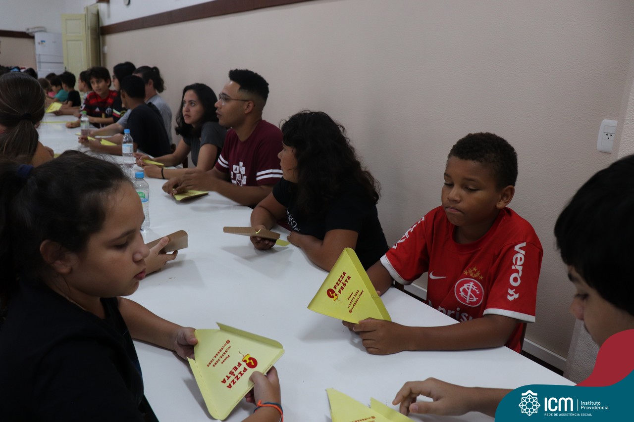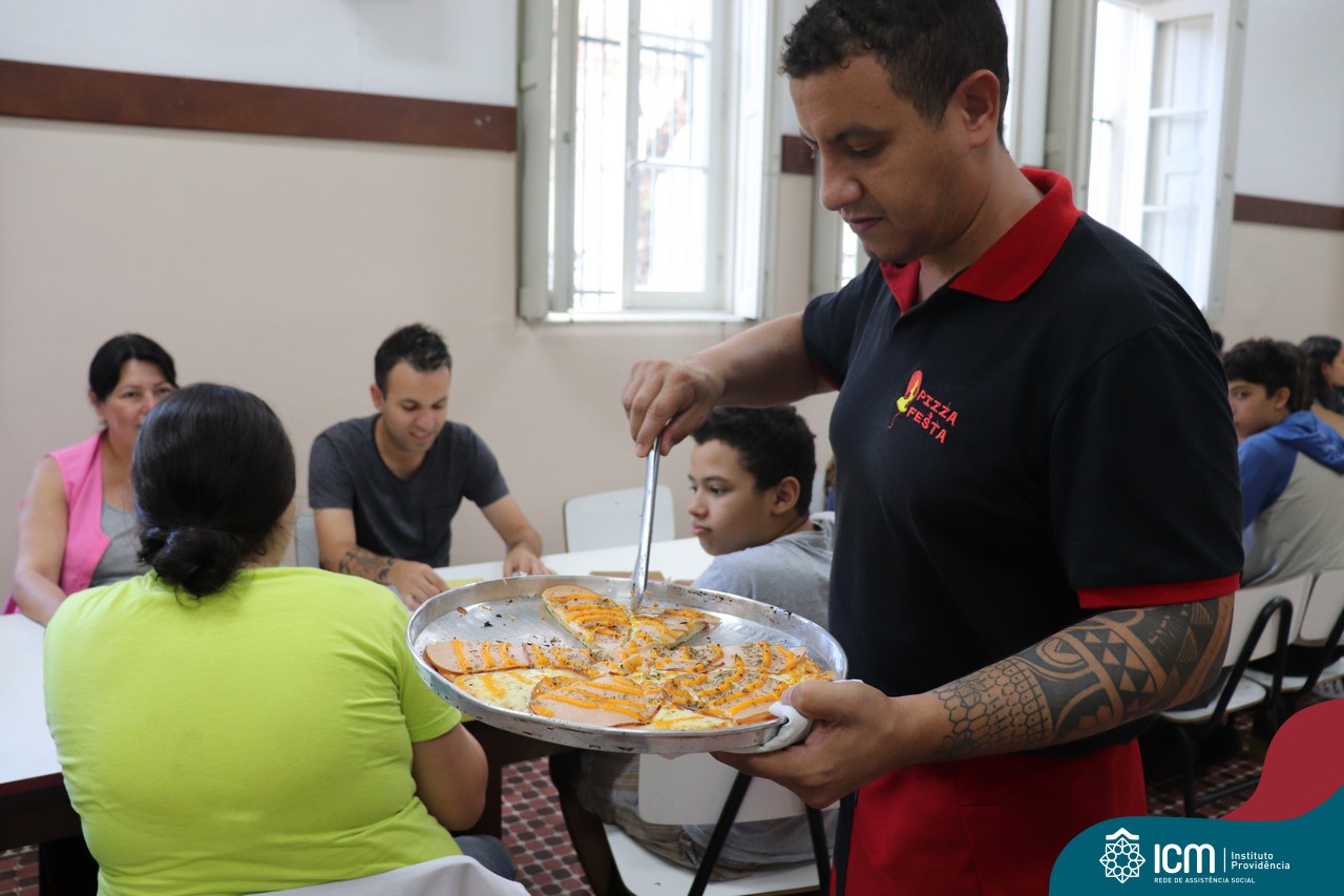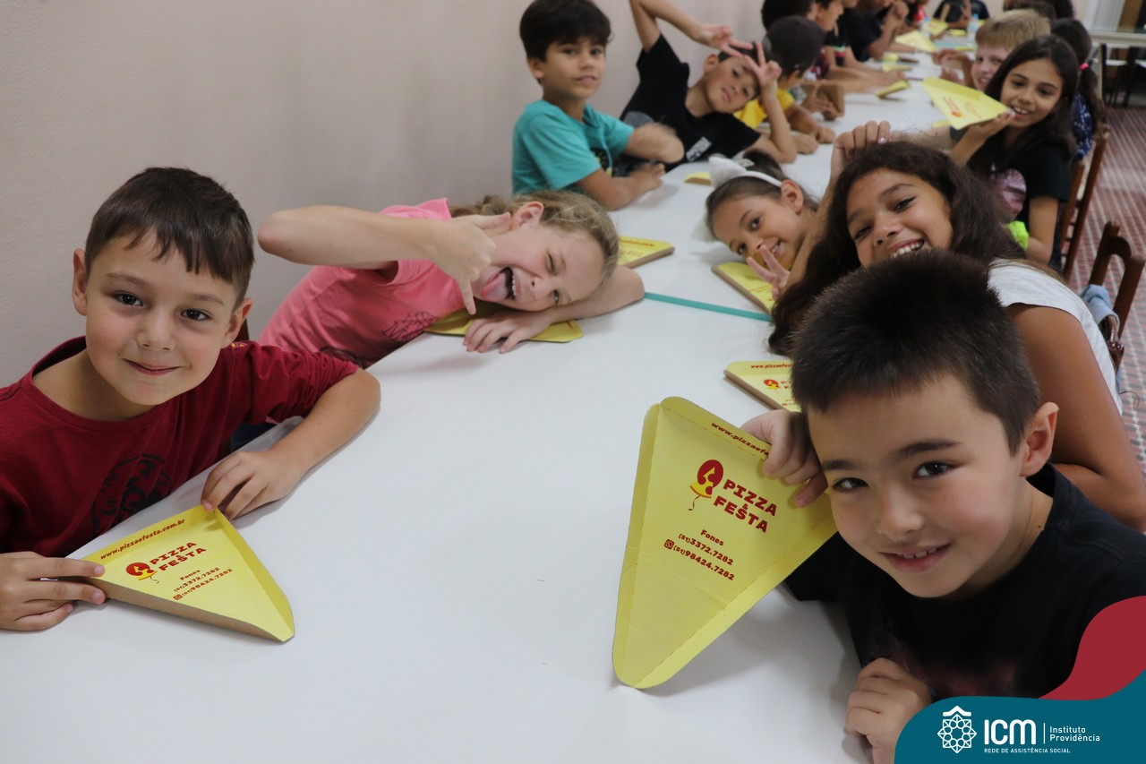 Para alegrar o dia, nesta quarta foi realizado um almoço especial, onde a empresa Pizza & Festa foi contratada para realizar um rodízio de pizza para a criançada. Eles adoraram e se deliciaram com muitas pizzas saborosas, também puderam se divertir uns com os outros, partilhando um momento muito agradável.