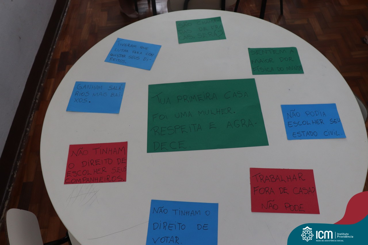 O grupo teve a oportunidade de conhecer a história de luta e resistência das mulheres, desmistificando muitas das concepções que tinham anteriormente (principalmente os meninos). Também foi falado sobre a importância de praticar cada vez mais a sororidade, pois desta forma torna-se mais leve de viver em um mundo com muitas pessoas que ainda demonstram atitudes machistas.