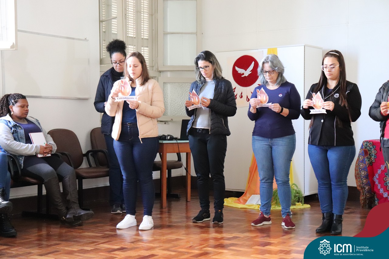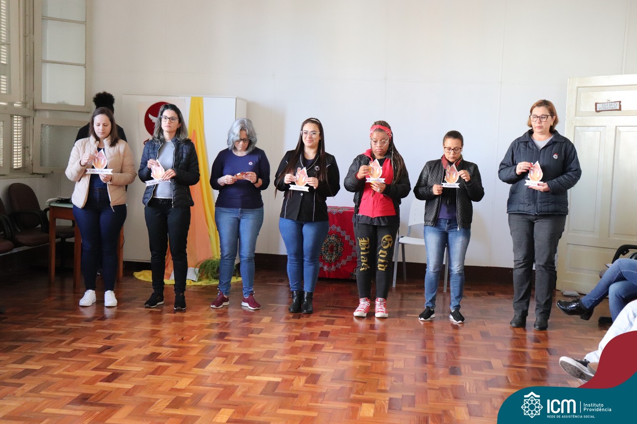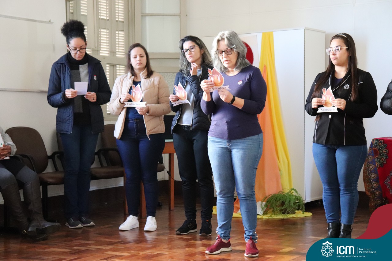 A Professora Karine dos Santos, da Faculdade de Educação da UFRGS (Faced), foi convidada a participar, onde propôs uma reflexão sobre “Saberes da Experiência: os nós que nos constituem e nos trouxeram até aqui”. Um momento que compartilhamos sobre nossa caminhada até chegarmos ao Instituto Providência, nossas forças e desafios diante da nossa missão e atendimentos, como também a importância da função de cada um, no espaço de trabalho e na vida das crianças, adolescentes e famílias. Esta troca de saberes e experiências proporcionou a todos o reconhecimento da sua função e importância como educadores sociais.