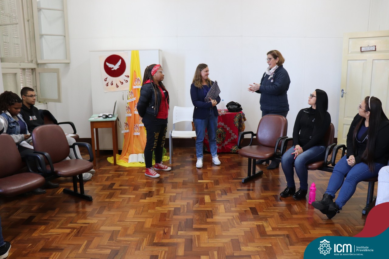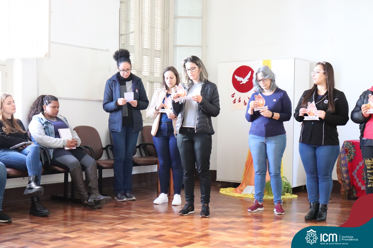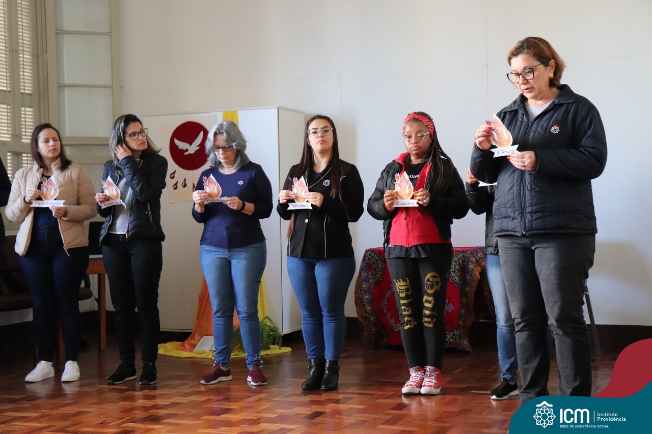 A Professora Karine dos Santos, da Faculdade de Educação da UFRGS (Faced), foi convidada a participar, onde propôs uma reflexão sobre “Saberes da Experiência: os nós que nos constituem e nos trouxeram até aqui”. Um momento que compartilhamos sobre nossa caminhada até chegarmos ao Instituto Providência, nossas forças e desafios diante da nossa missão e atendimentos, como também a importância da função de cada um, no espaço de trabalho e na vida das crianças, adolescentes e famílias. Esta troca de saberes e experiências proporcionou a todos o reconhecimento da sua função e importância como educadores sociais.