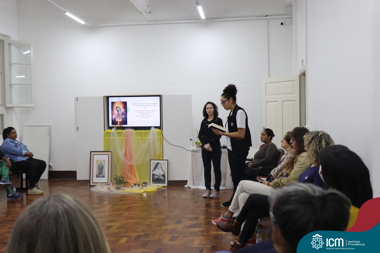 Iniciamos nossa formação continuada com uma dinâmica liderada pela Ir. Daniele. Durante esse momento, refletimos sobre a importância do cuidado materno em nossas vidas, inspirados tanto pela figura de Maria, que personifica coragem e fé, quanto por Bárbara Maix, cujas virtudes nos inspiram.