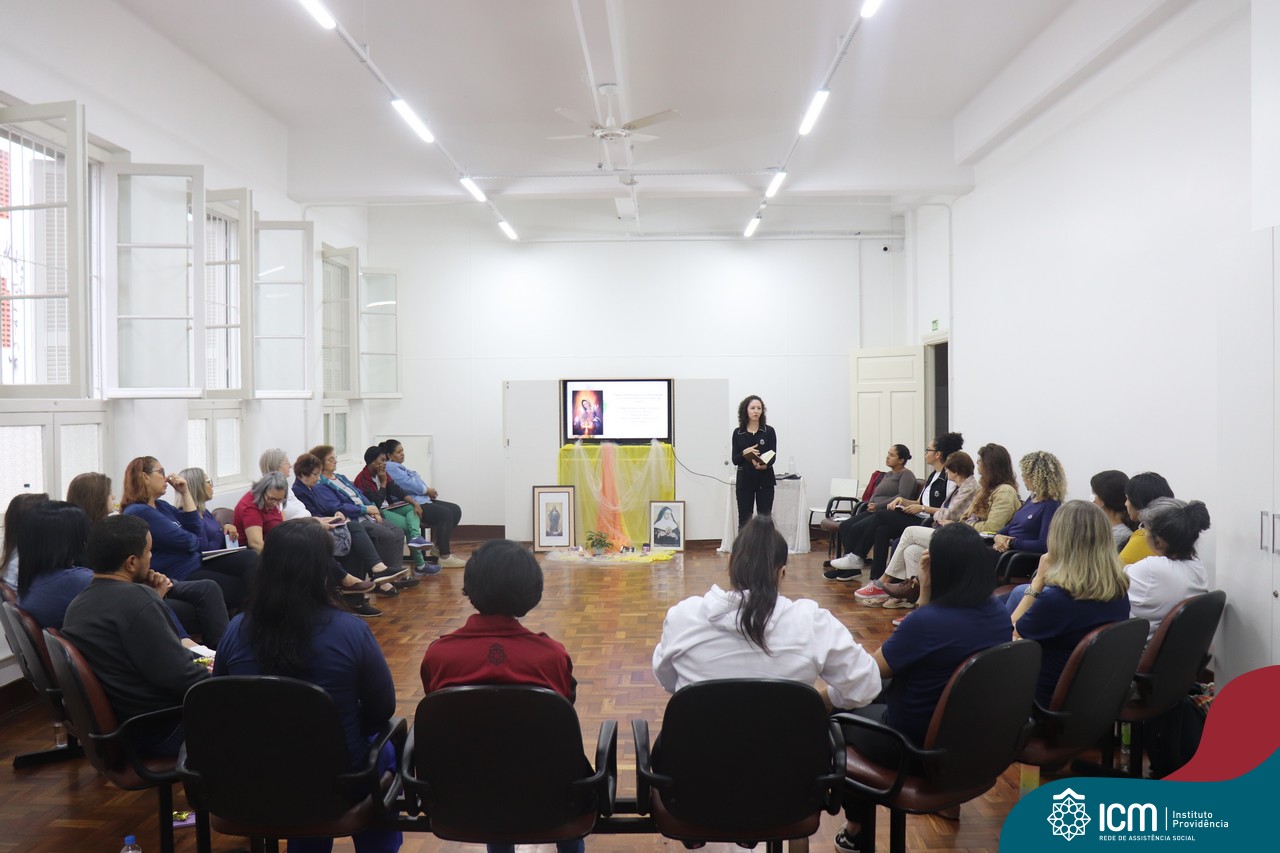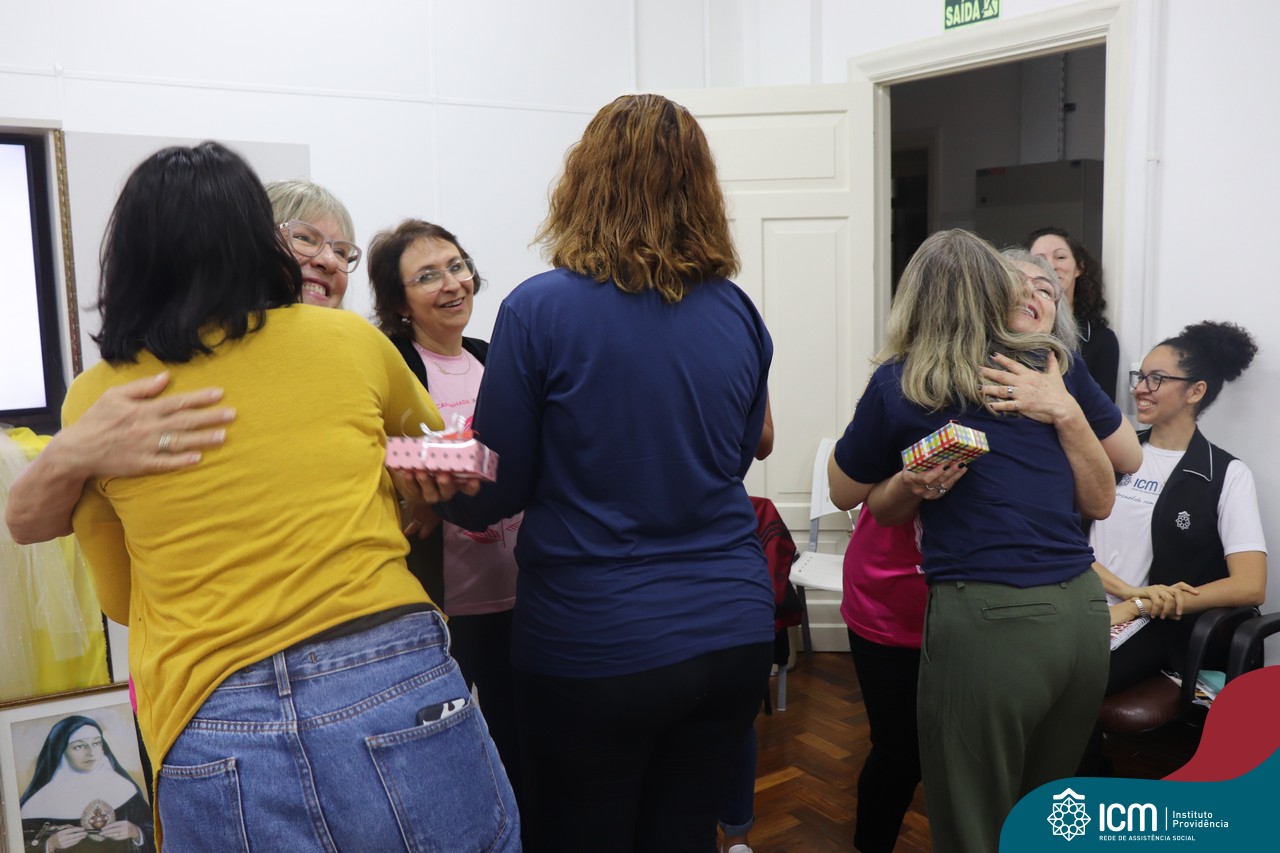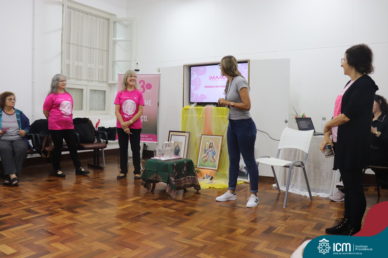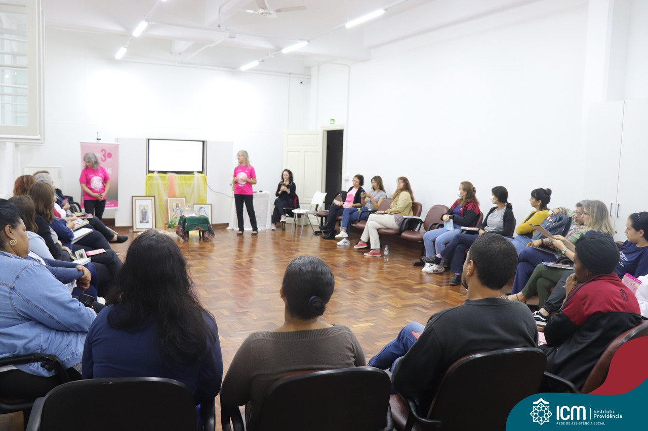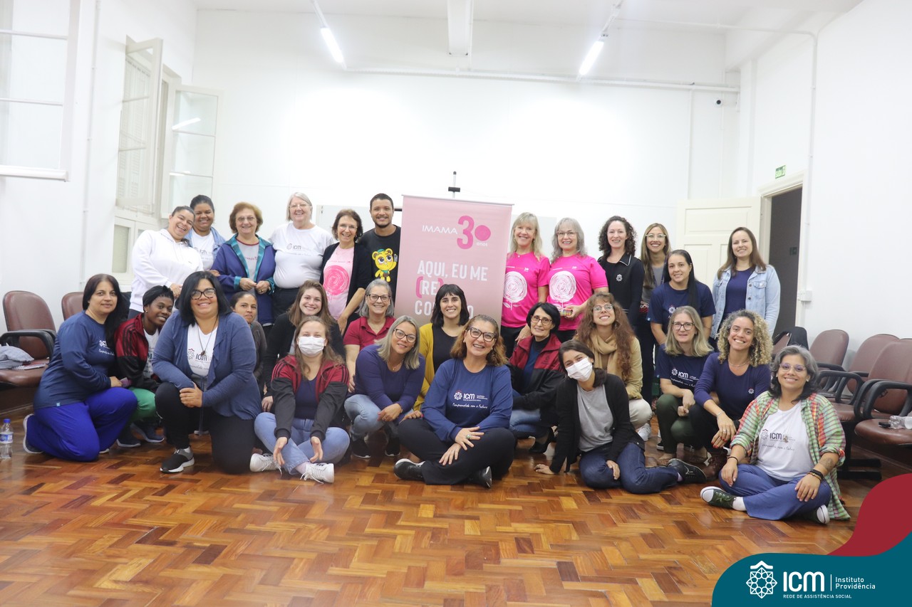 Em sintonia com o tema “Cuidado com o Cuidador”, e com o objetivo de fortalecer nossa equipe, estabelecemos uma parceria valiosa com o Instituto Moinhos Social. Recebemos com gratidão a equipe de voluntárias Carmem e Alice, do Instituto da Mama/RS, o IMAMA, as palestrantes compartilharam conosco seu trabalho dedicado à conscientização sobre a importância dos cuidados com a saúde da mama, ações com palestras, acolhimento de novos voluntários e divulgação da causa na sociedade gaúcha.