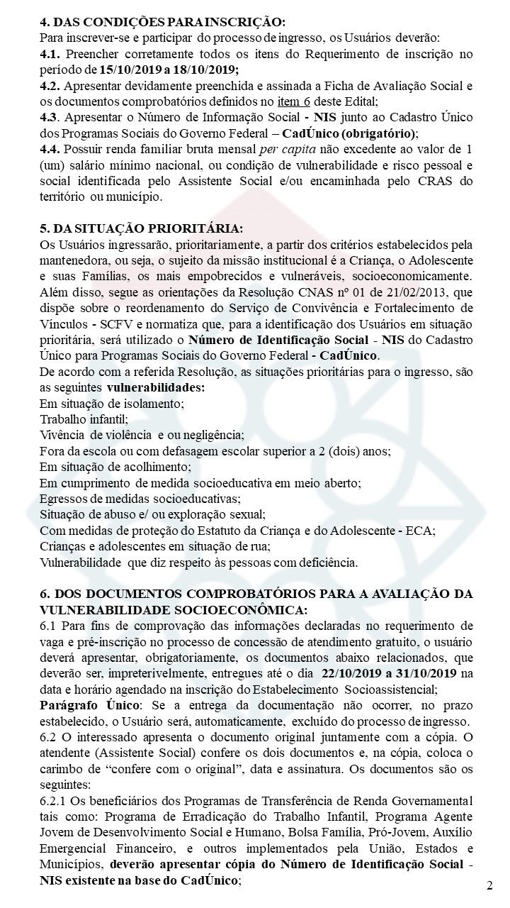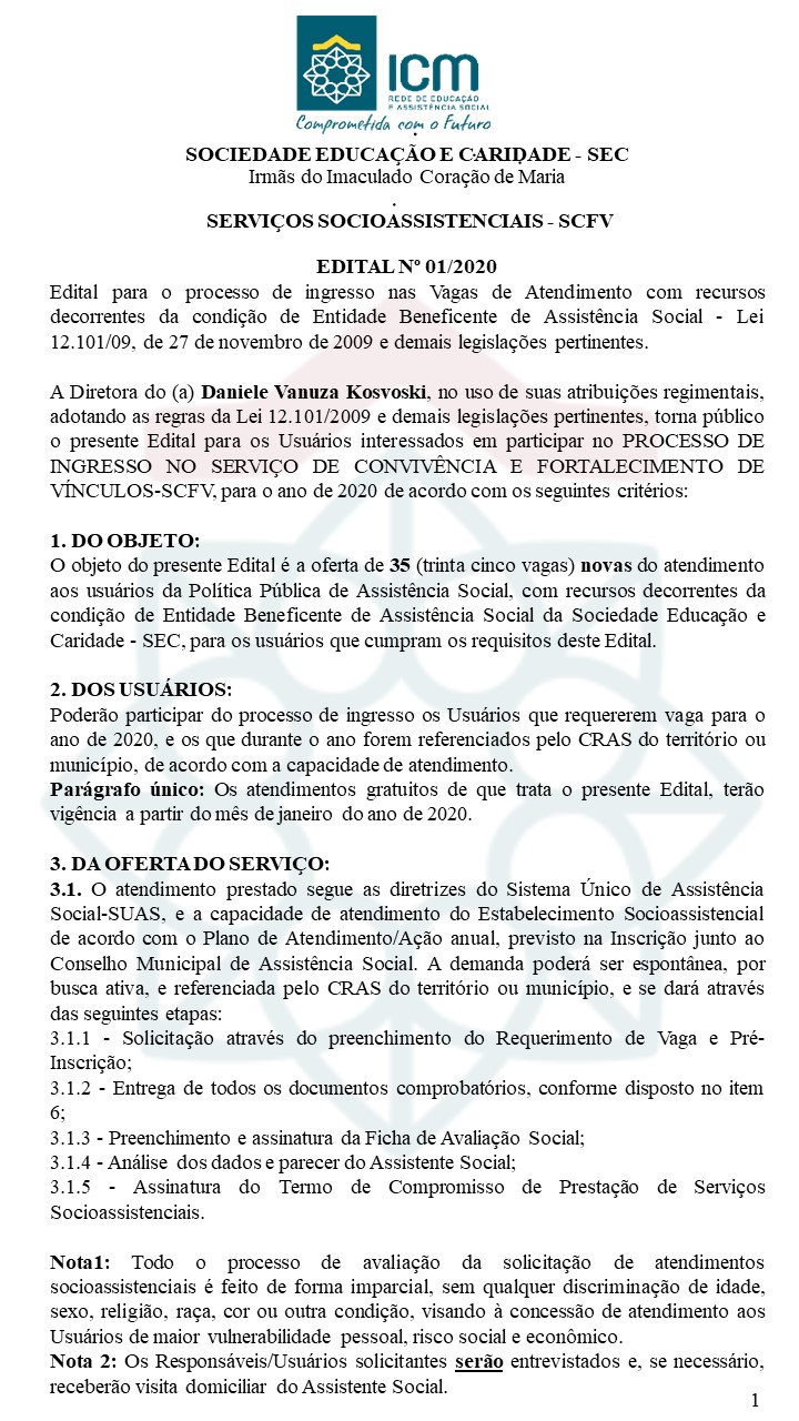 - O processo realizado via Edital tem como objetivo atender ao que está disposto na Lei 12.101 de 27 de novembro de 2009, sua regulamentação e demais alterações, referentes a Certificação de Entidades de Assistência Social – CEBAS.