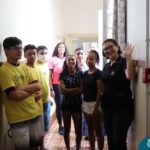 Os adolescentes do grupo da manhã guiaram a visita apresentando os espaços, oficinas e atividades que são realizadas. Após, partilharam a organização e vivências, finalizando com roda de conversa descontraída afim de fortalecer os vínculos entre os educandos e as Instituições.