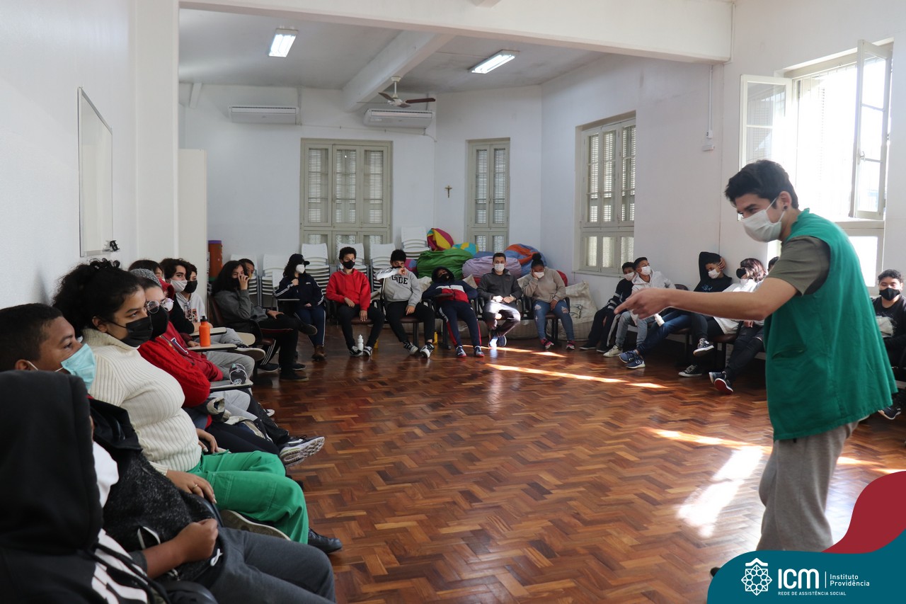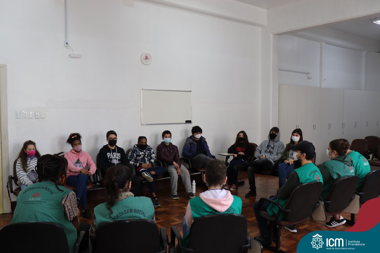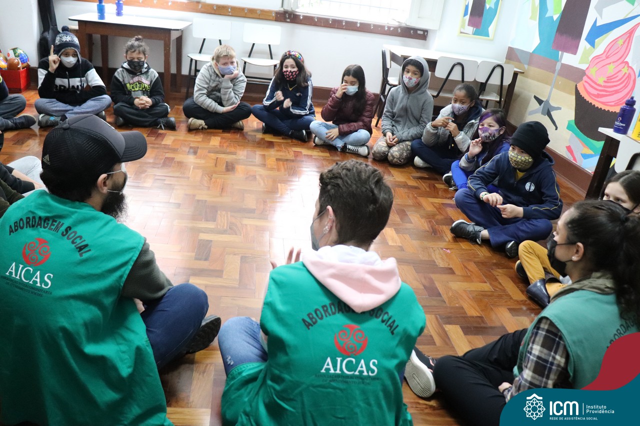 A equipe de Abordagem Social da Associação Inter-Comunitária de Atendimento Social (AICAS) realizou atividades com as crianças e adolescentes do Instituto Providência, tendo como objetivo apresentar o trabalho realizado pela equipe e refletir sobre a temática do Trabalho Infantil. Através de dinâmicas e técnicas do Teatro do Oprimido, foi possível encenar a respeito do trabalho infantil e dialogar sobre as situações que ocorrem na região central de Porto Alegre.
