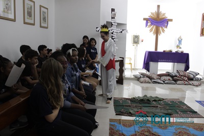 A celebração foi conduzida pela Pastoral que realizou um teatro, relatando os caminhos de Jesus, em seguida a proposta foi de cada grupo trazer uma reflexão sobre sobre a páscoa com o olhar das crianças e adolescentes. Um dos grupos trouxe a mensagem que é possível nos dias atuais a juventude falar sobre a páscoa e que juntos somos brilhantes, potentes e resilientes.