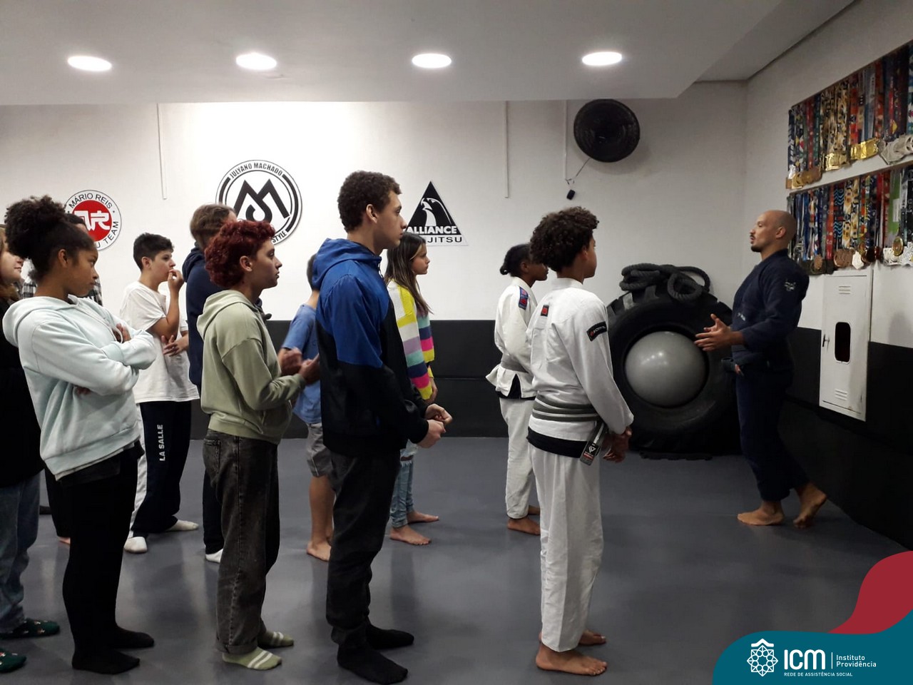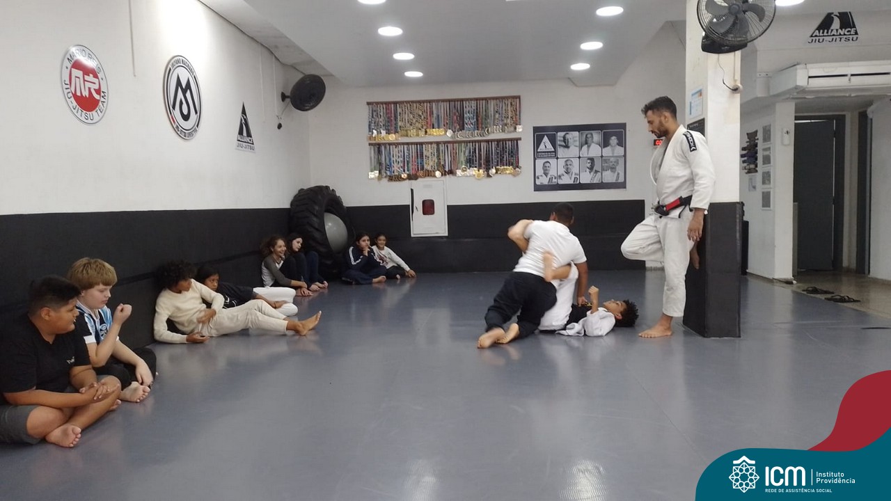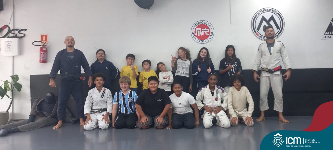 Dando início as aulas de jiu-jitsu, tão esperada pelas crianças e os adolescentes. Com a orientação dos professores os educandos já têm se dedicado em aprender as técnicas de defesa pessoal, desenvolvendo também habilidades físicas e mentais, visando aprimorar a coordenação motora, concentração, autoconfiança e disciplina. A ideia é que essa atividade agregue valor à rotina dos educandos, tornando ainda mais atrativo e qualificado nosso trabalho.