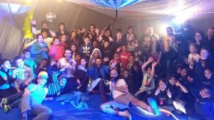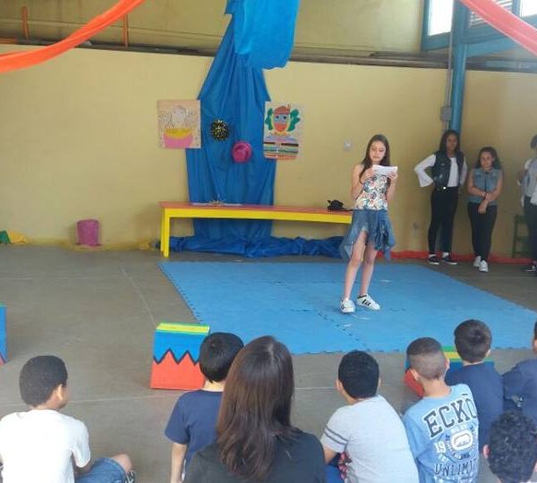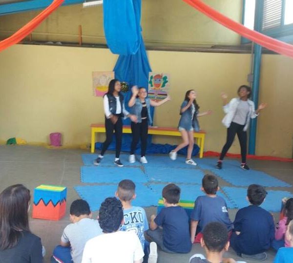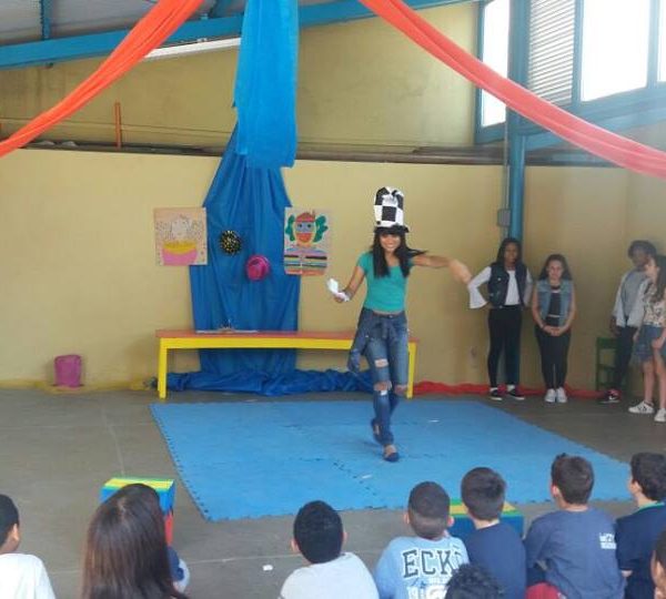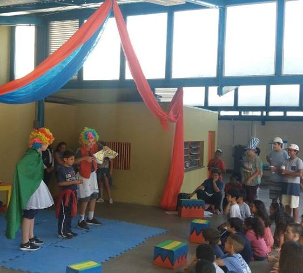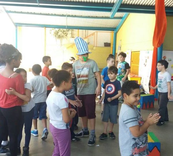 Os educandos do SCFV E, que fazem parte do projeto Pérolas Mirins, organizaram para o mês da criança um espetáculo de circo para o SCFV A e B. Realizaram malabarismo, equilibrismo, mágicas, charadas, os palhaços divertiram a plateia e por fim brincaram de estátua.