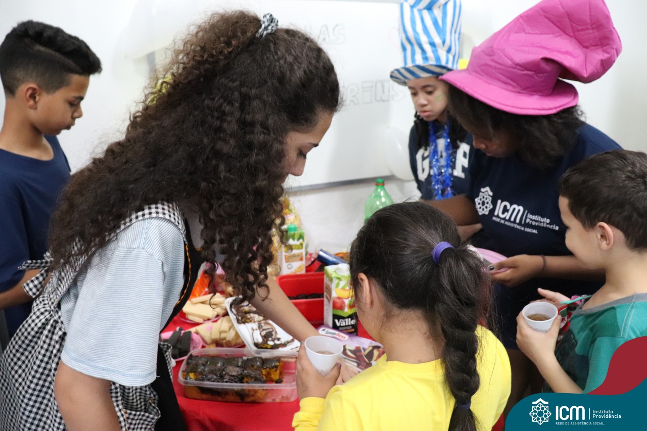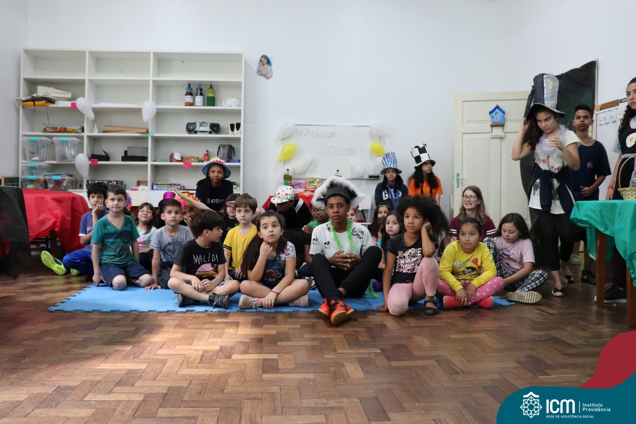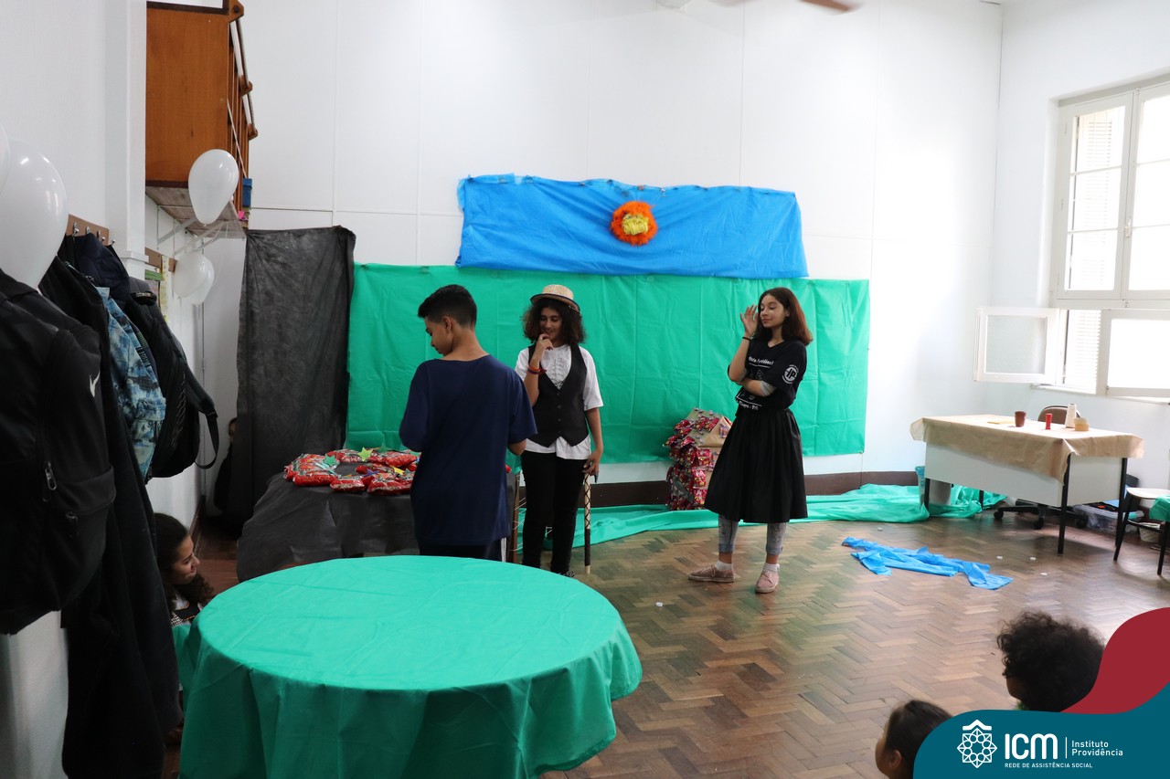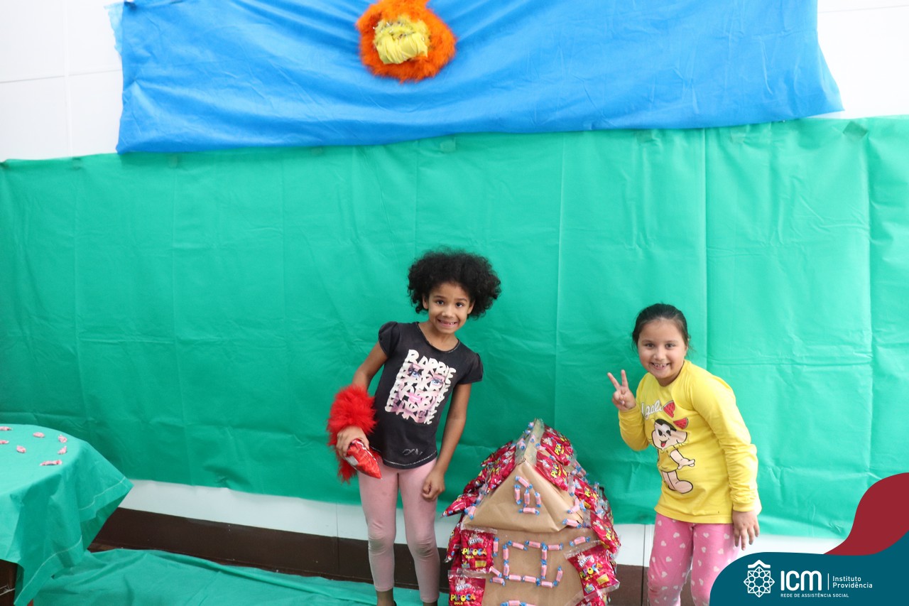 A proposta de atividade do SCFV D foi de um teatro da história “João e Maria”, onde os educandos encenaram para as crianças e também decoraram a sala através da temática. Em seguida realizaram um lanche coletivo com os grupos A e B.