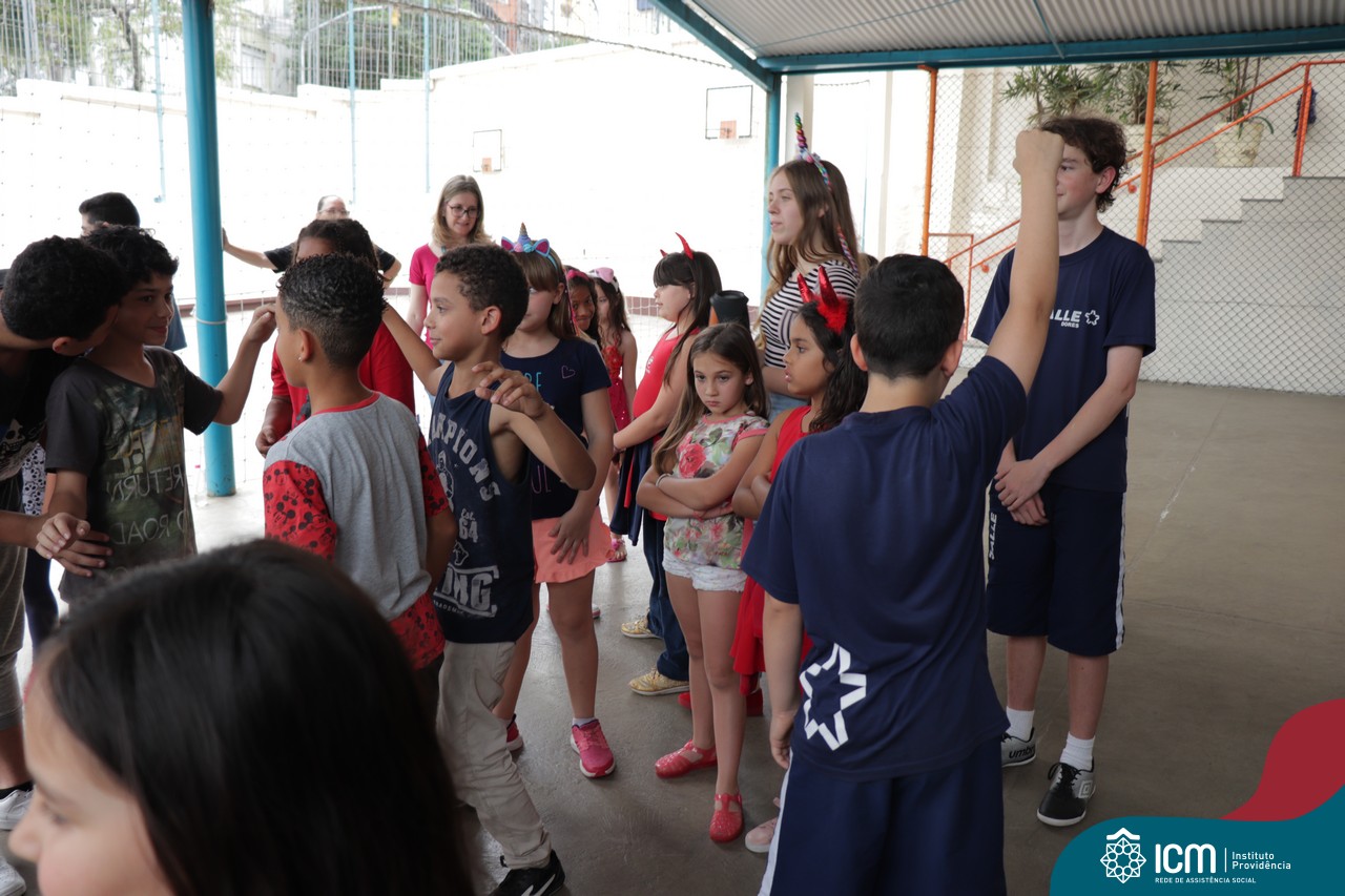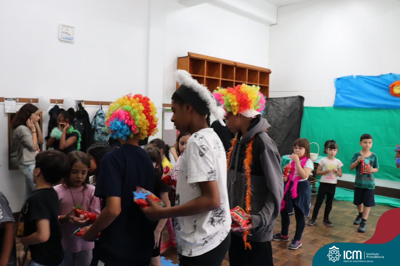 O grupo do SCFV E realizou com as crianças do A e B uma festa fantasia, a principal brincadeira foi “Detetive”, escolhida por eles. O lanche foi um bolo bem gostoso realizado na oficina de culinária, contando ainda com a contribuição de lanches oferecidos pelas famílias dos adolescentes. Em seguida, crianças e adolescentes se divertiram com brincadeiras livres para festejar o final da edição deste ano.