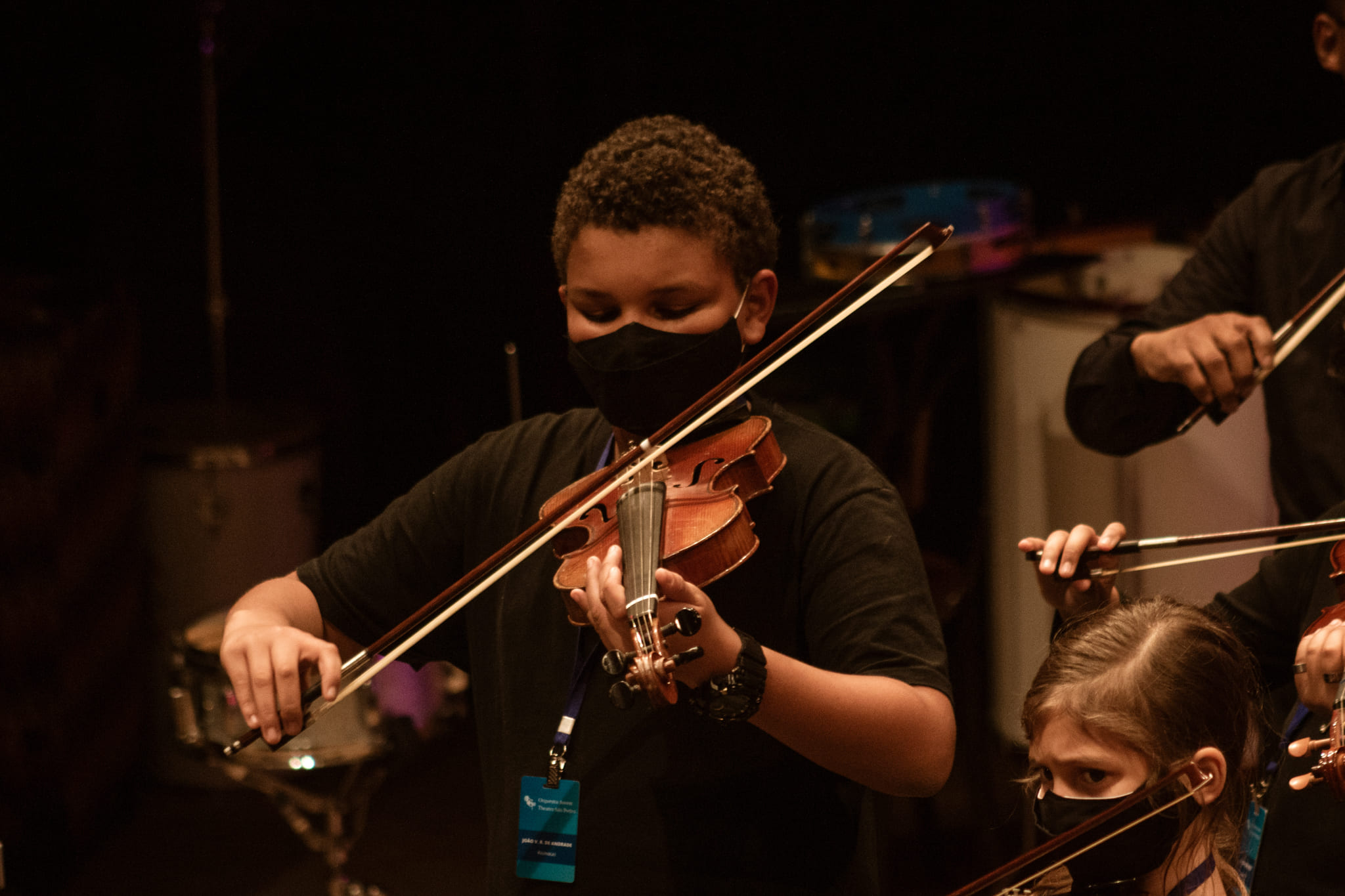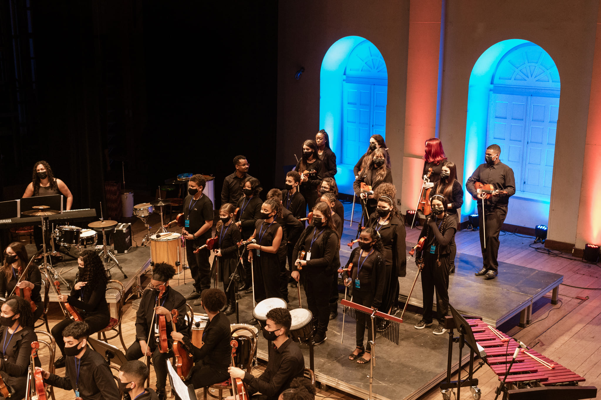 O projeto Orquestra Jovem Theatro São Pedro – Vida com Arte -, núcleo Porto Alegre, iniciou suas atividades em junho de 2021, tendo como objetivo promover a inclusão cultural através do acesso ao desenvolvimento da linguagem musical e da técnica instrumental, fomentando vivências artísticas a mais de 100 crianças e adolescentes. Com coordenação geral do maestro Evandro Matté e coordenação pedagógica da professora e maestrina Keliezy Severo, o projeto se destaca na programação do Theatro São Pedro como uma importante ação de formação de novos talentos da música.