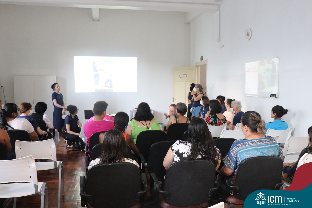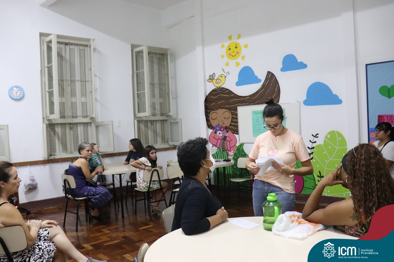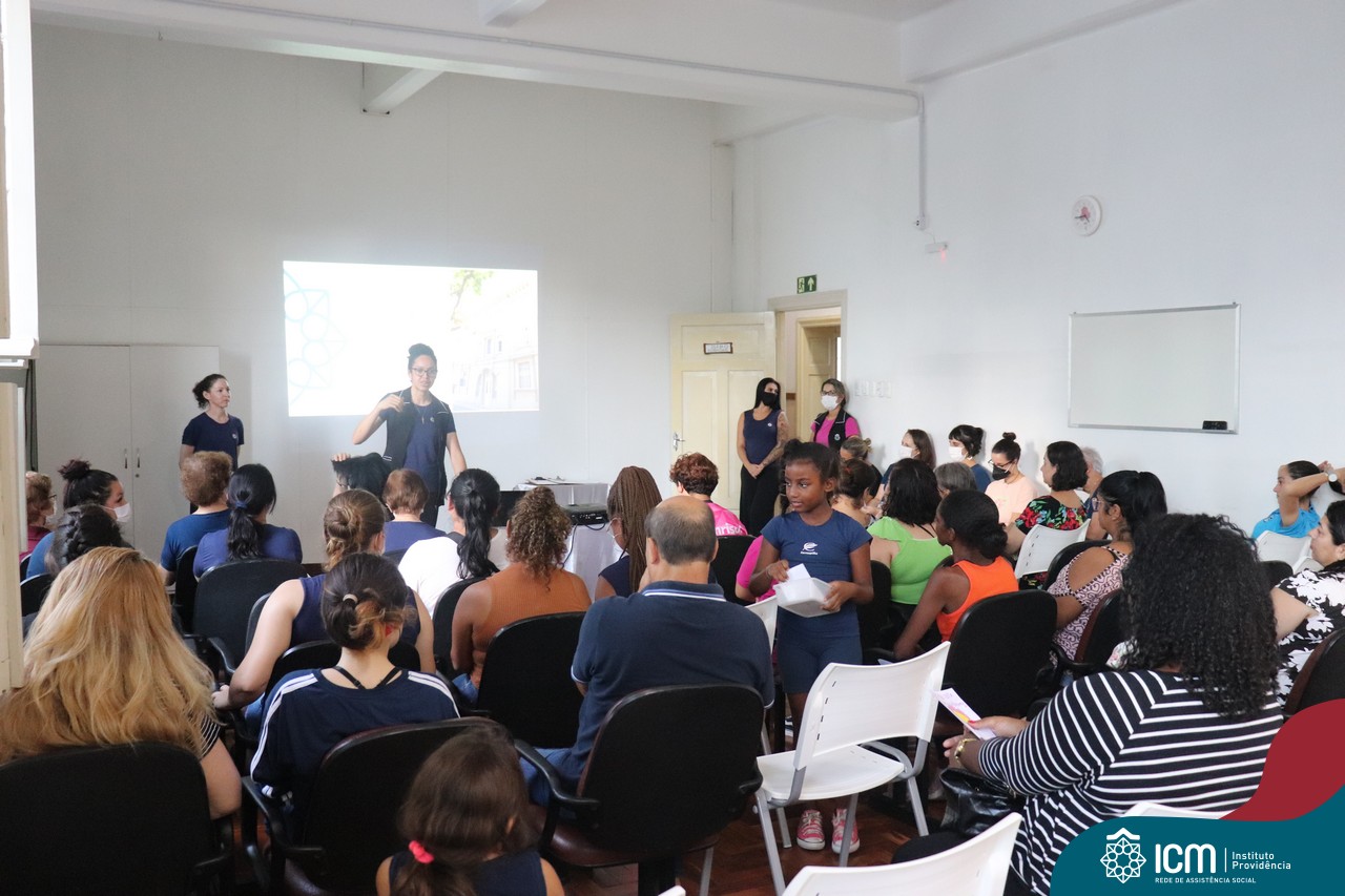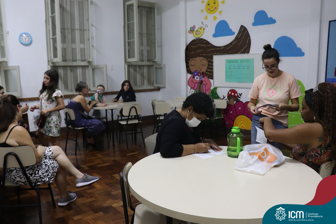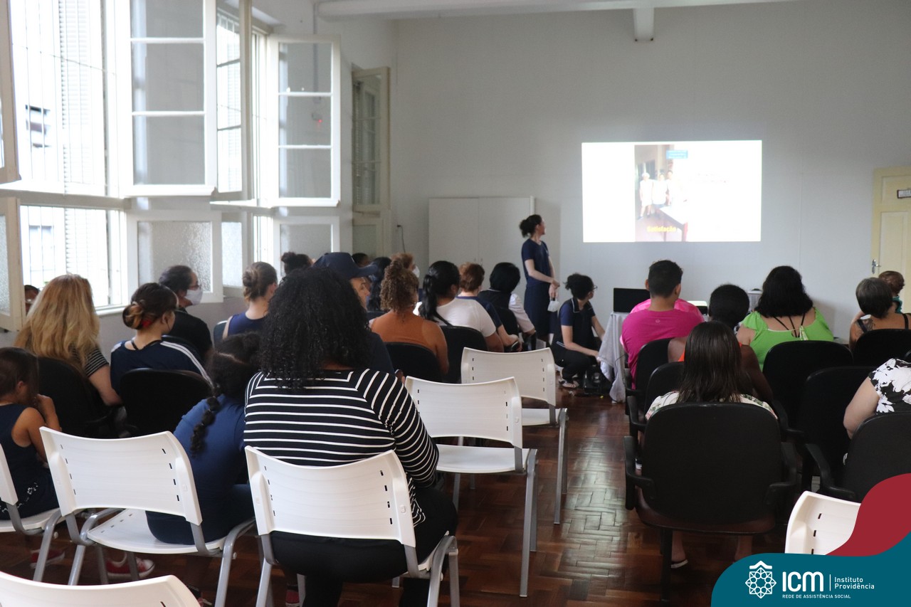 Foi compartilhada com os participantes as oficinas ofertadas pela instituição às famílias e comunidade, tais como Costura e Modelagem, Oficina Criativa, e Embelezamento (cabelo) onde os interessados já podiam se inscrever, e integrantes para compor a Comissão de Famílias.