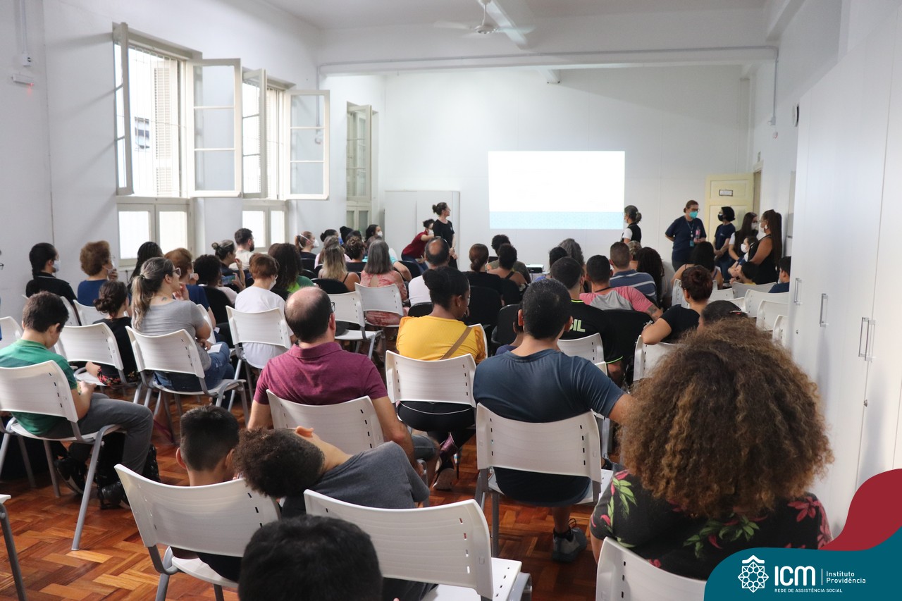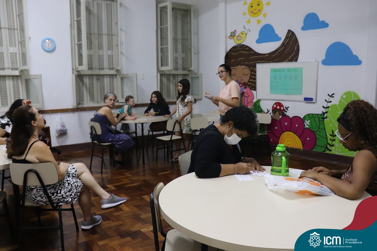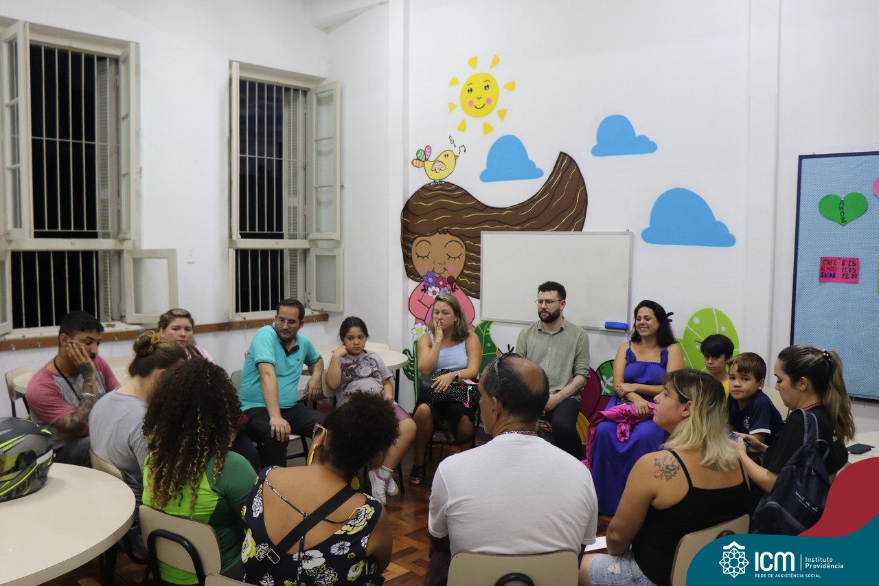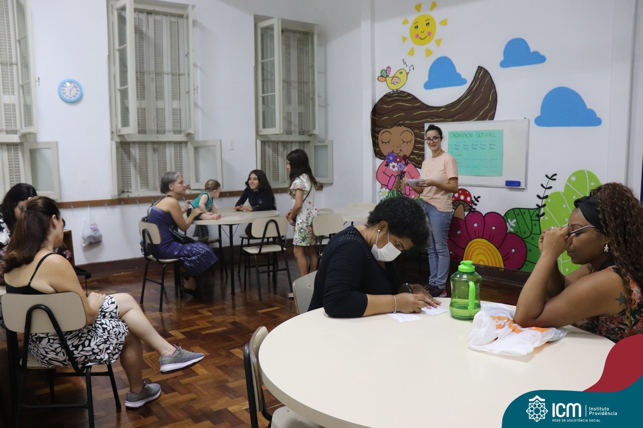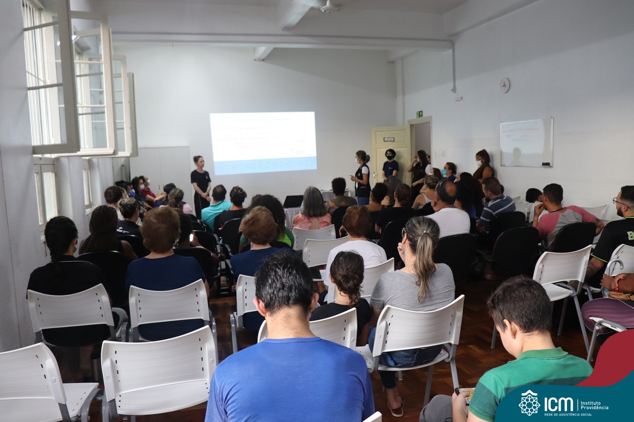 Foi compartilhada com os participantes as oficinas ofertadas pela instituição às famílias e comunidade, tais como Costura e Modelagem, Oficina Criativa, e Embelezamento (cabelo) onde os interessados já podiam se inscrever, e integrantes para compor a Comissão de Famílias.