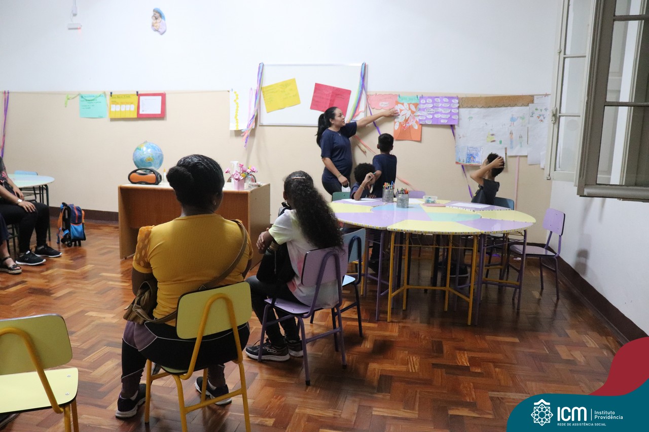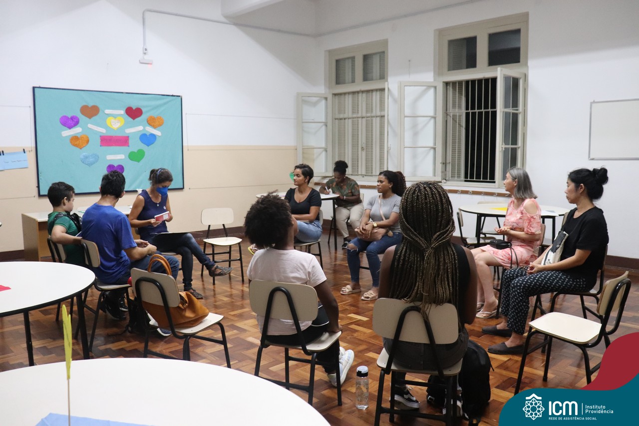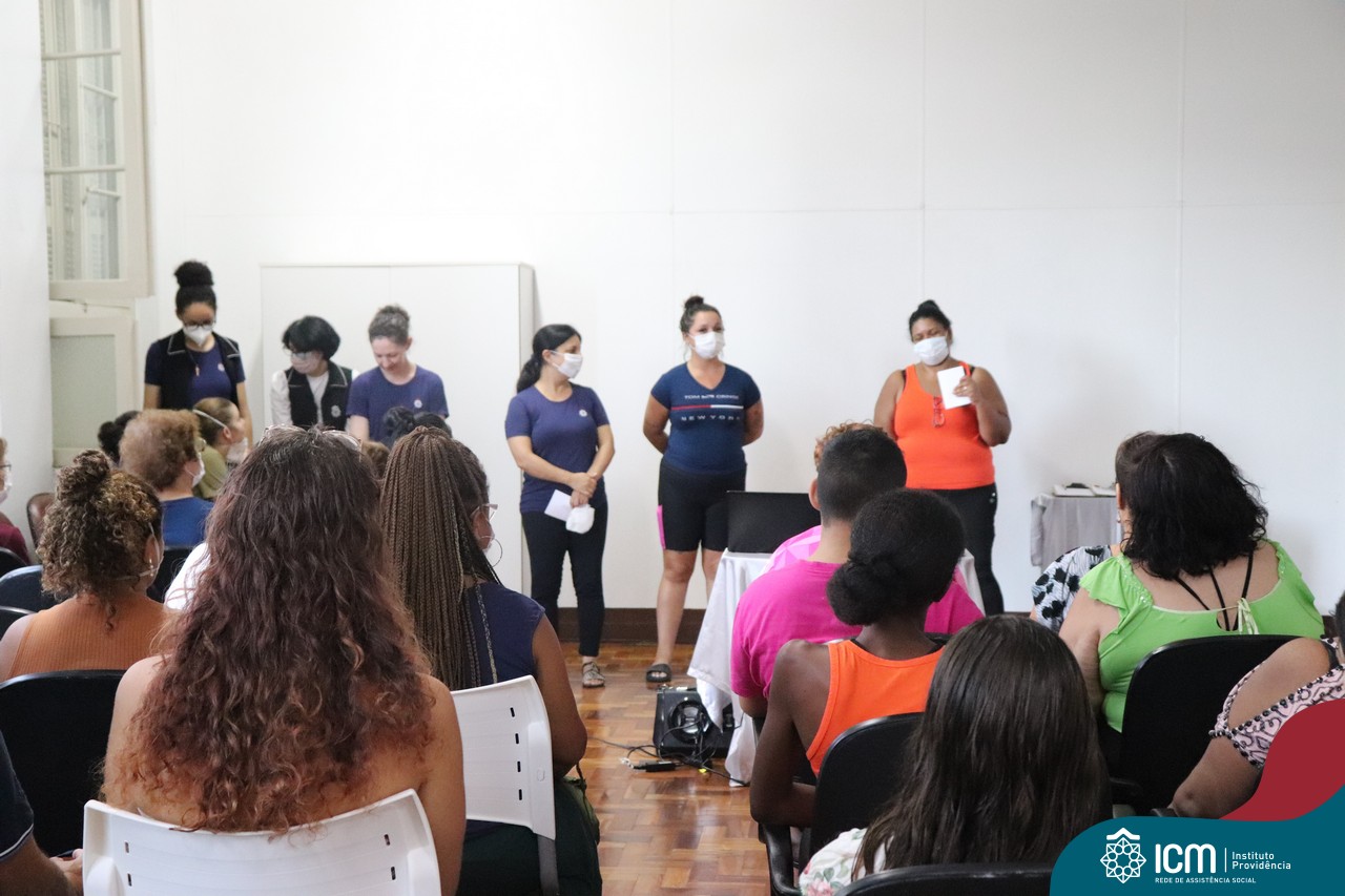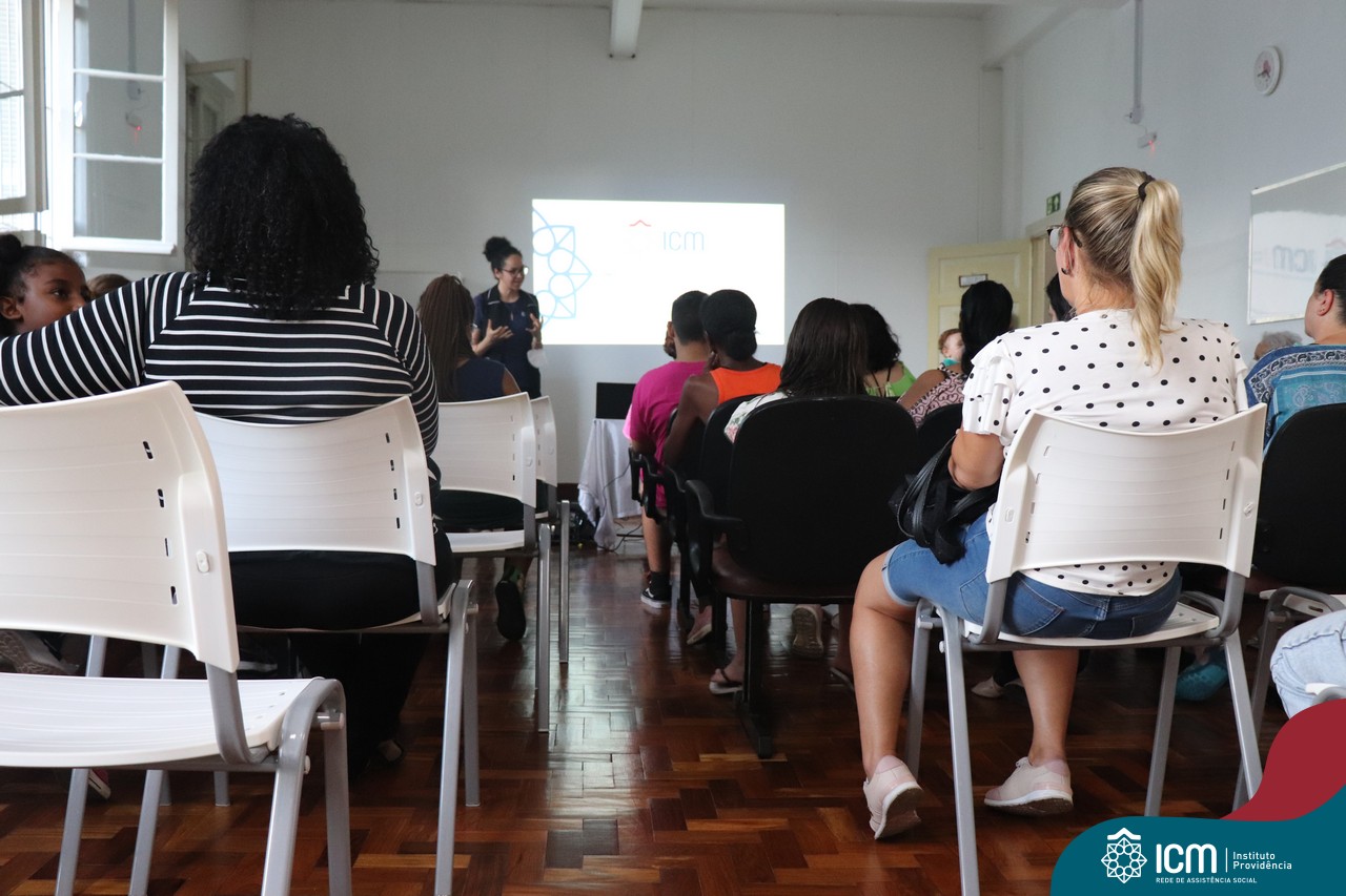 Foi compartilhada com os participantes as oficinas ofertadas pela instituição às famílias e comunidade, tais como Costura e Modelagem, Oficina Criativa, e Embelezamento (cabelo) onde os interessados já podiam se inscrever, e integrantes para compor a Comissão de Famílias.