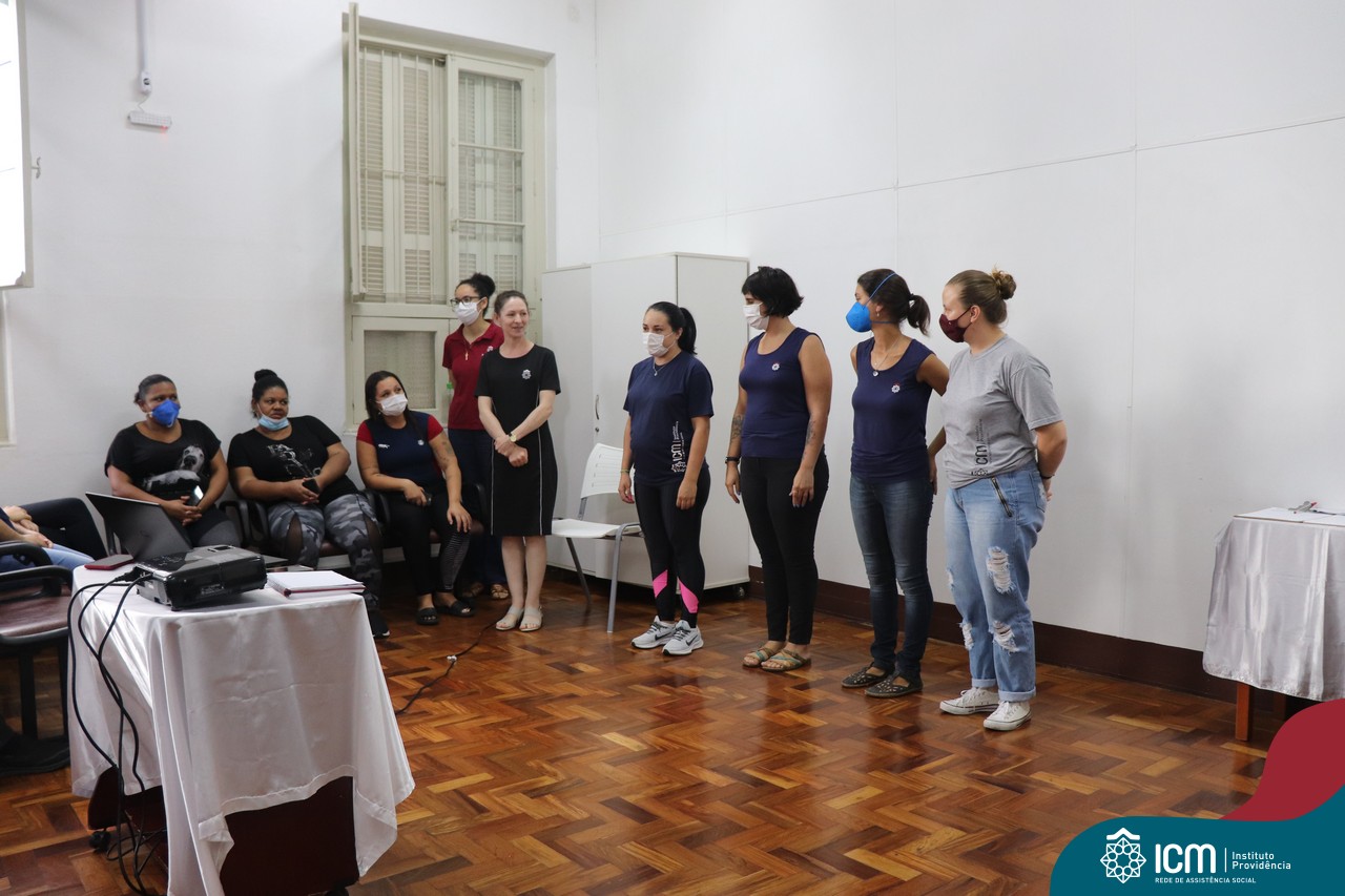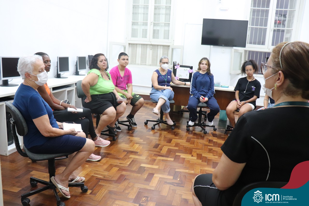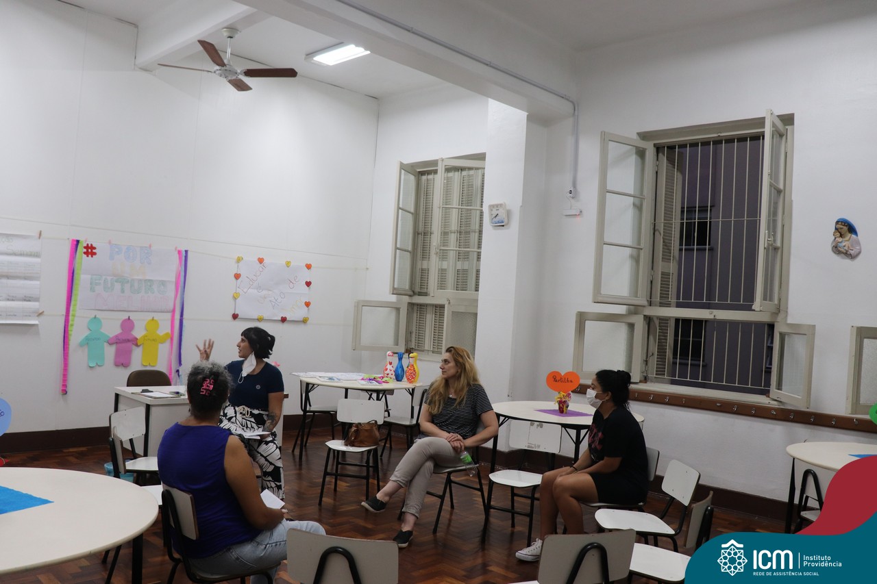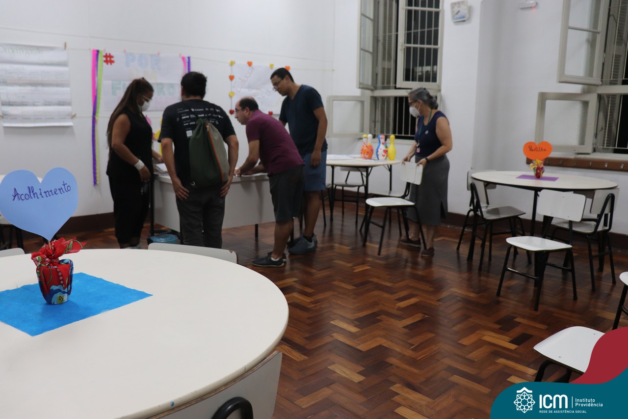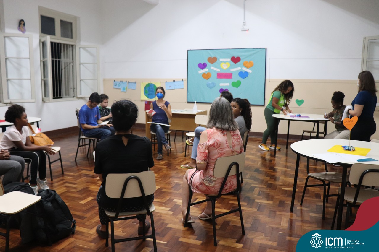 Foi compartilhada com os participantes as oficinas ofertadas pela instituição às famílias e comunidade, tais como Costura e Modelagem, Oficina Criativa, e Embelezamento (cabelo) onde os interessados já podiam se inscrever, e integrantes para compor a Comissão de Famílias.