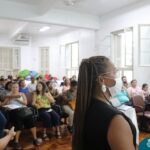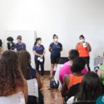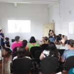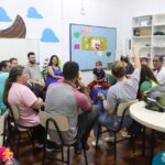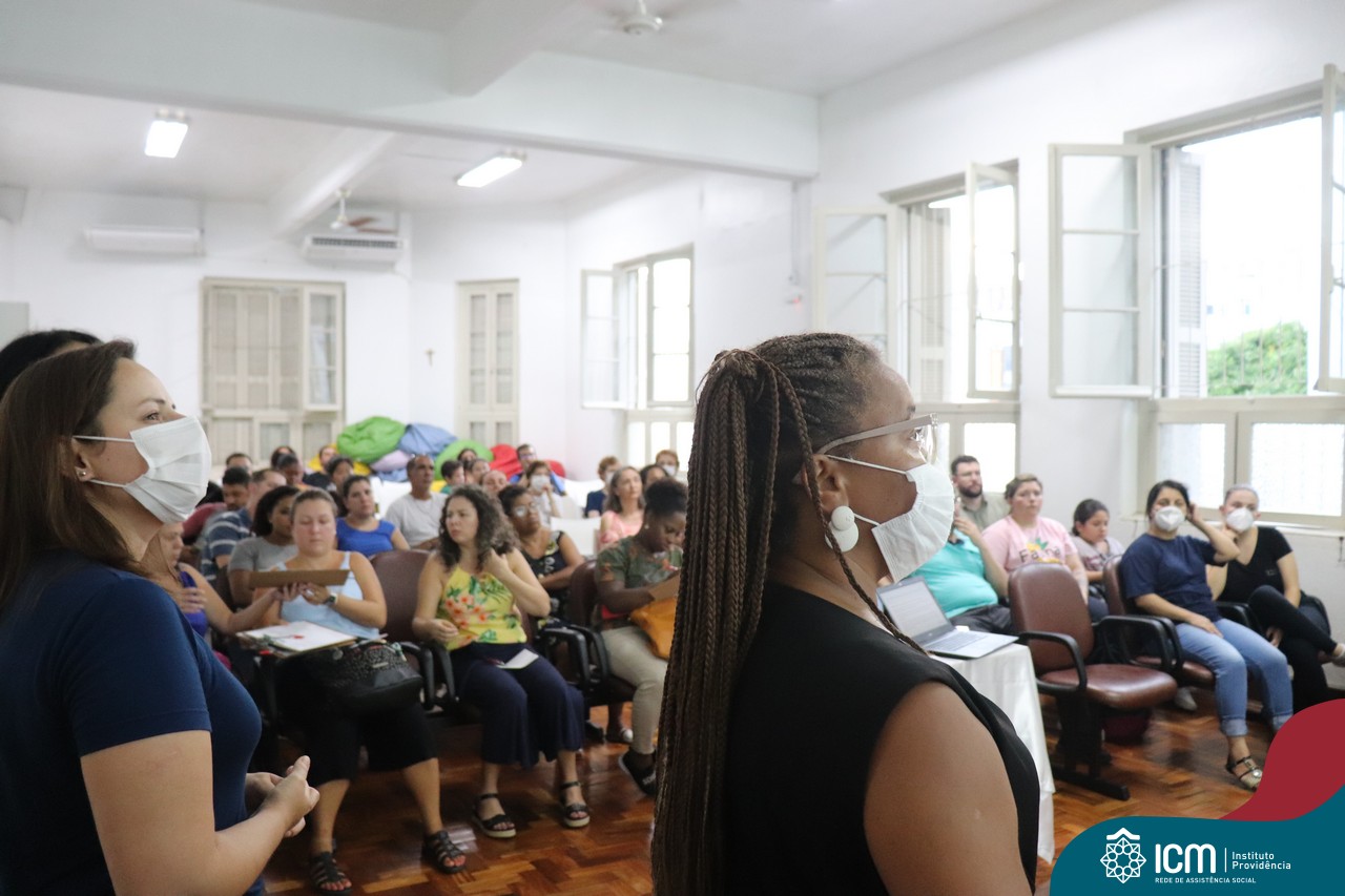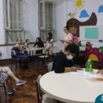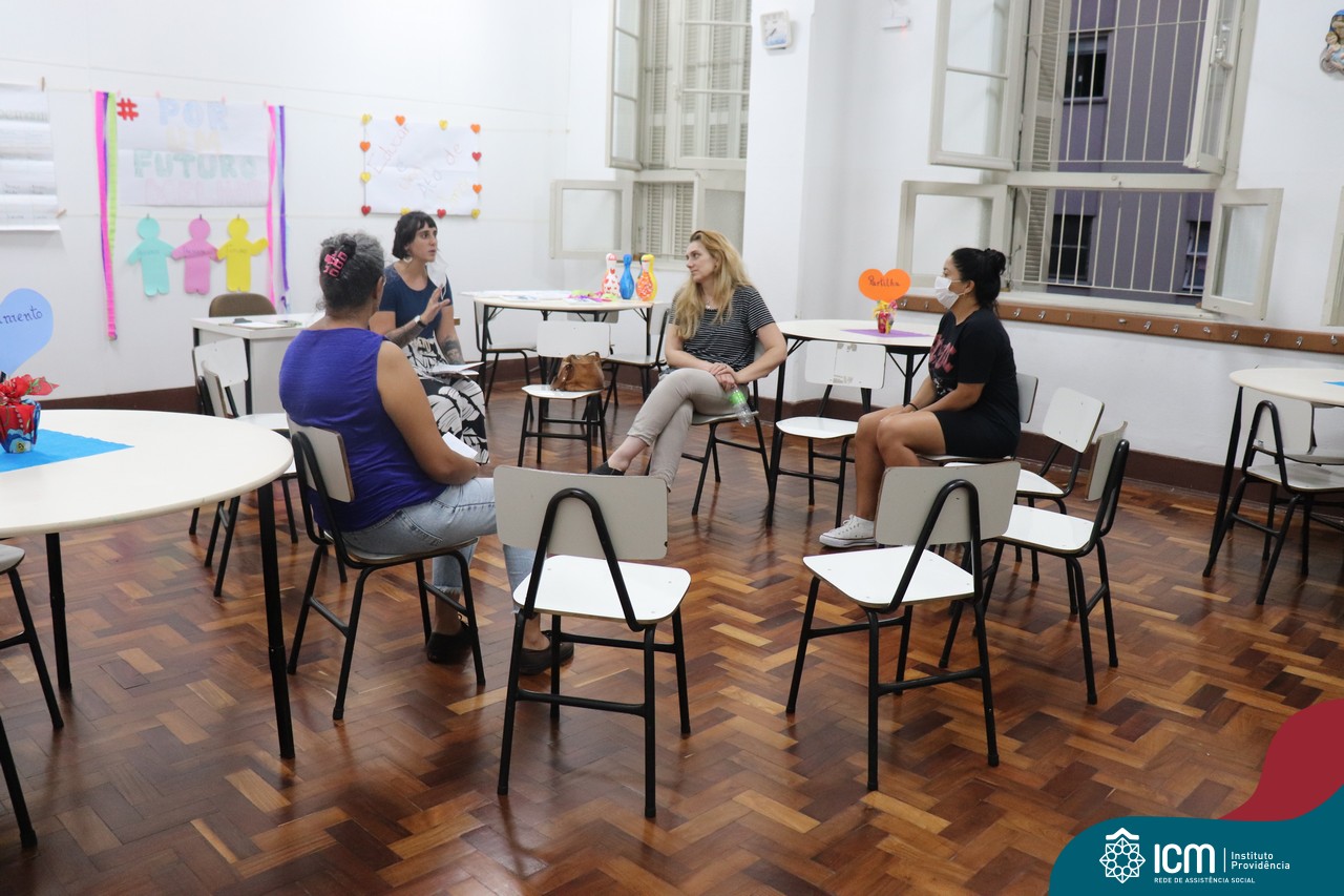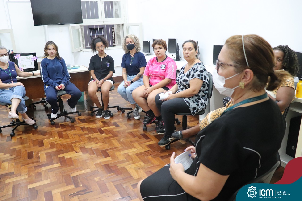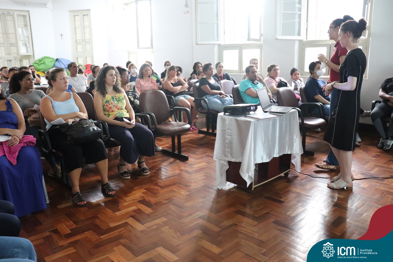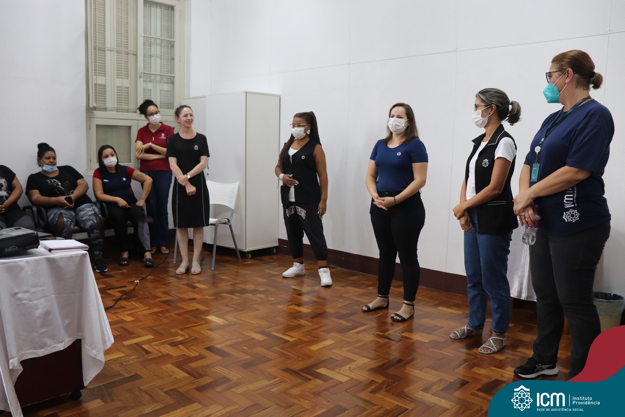 Foi compartilhada com os participantes as oficinas ofertadas pela instituição às famílias e comunidade, tais como Costura e Modelagem, Oficina Criativa, e Embelezamento (cabelo) onde os interessados já podiam se inscrever, e integrantes para compor a Comissão de Famílias.