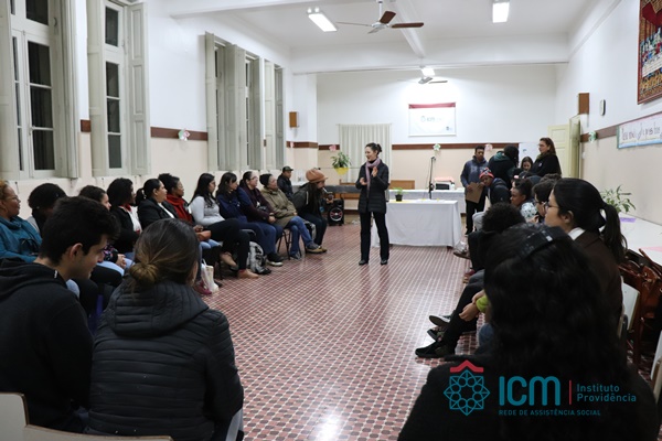Os adolescentes do Trabalho Educativo guiaram o momento com falas acolhedoras e sobre o que é realizado neste serviço, que é voltado para o mundo do trabalho e a formação cidadã. Também estavam presentes a equipe técnica e educadores da Instituição, que contribuíram para este momento especial.