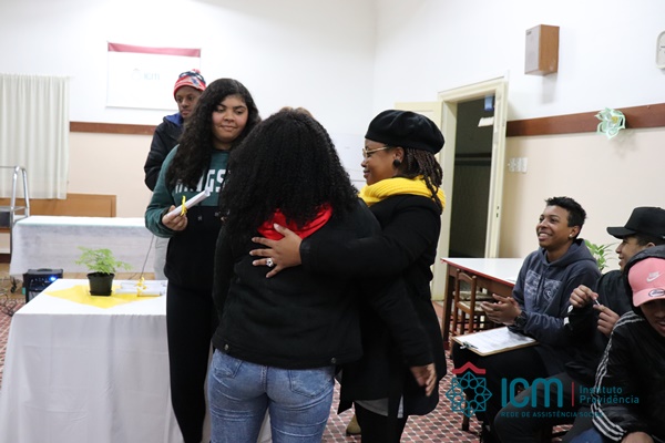 Nesta última quarta (10/07) aconteceu um encontro com as famílias, para realizar o rito de passagem dos adolescentes do grupo E que estão completando 15 anos para o Trabalho Educativo. Este momento foi para celebrar e valorizar os momentos vividos nesta etapa da vida de cada um deles, e iniciar novas trajetórias.