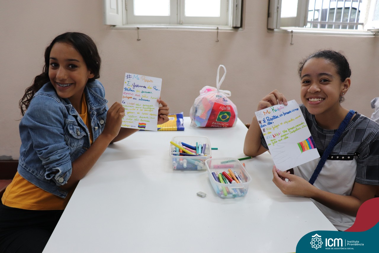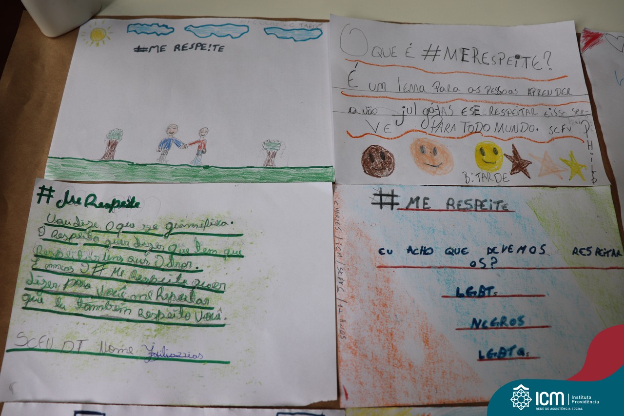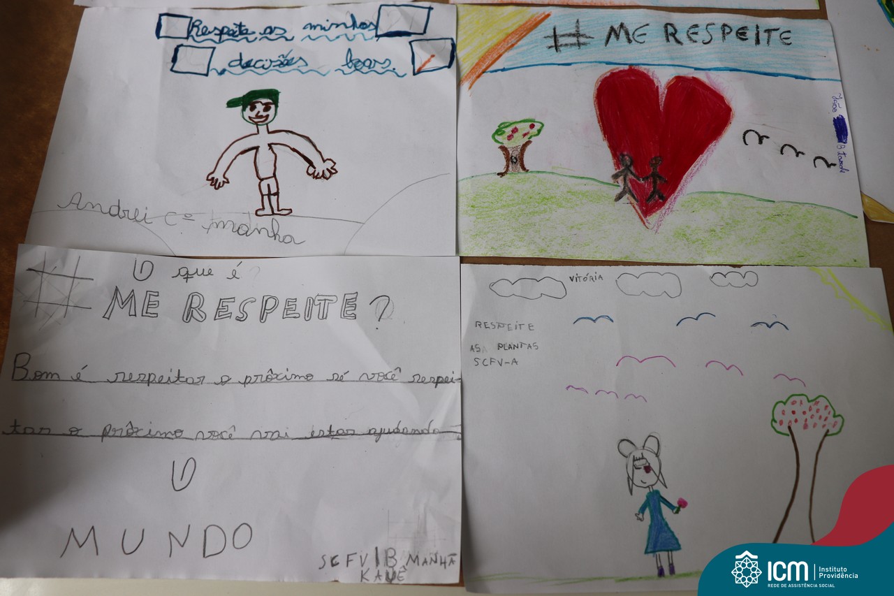 Uma das atividades foi a construção de um cartaz abordando a temática do ano de 2020, que é #MERESPEITE, com muita conversa e discussão sobre a importância de respeitarmos a nós mesmos.