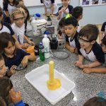 No início do mês de maio, os alunos dos 2ºs anos da manhã receberam a mãe Daniela Barsotti (professora de química do Ensino Médio do nosso Colégio), que é mãe do aluno Henrique Barsotti Saggioro do 2º 1M. A Daniela realizou com os alunos alguns experimentos de química e física no laboratório do nosso colégio.