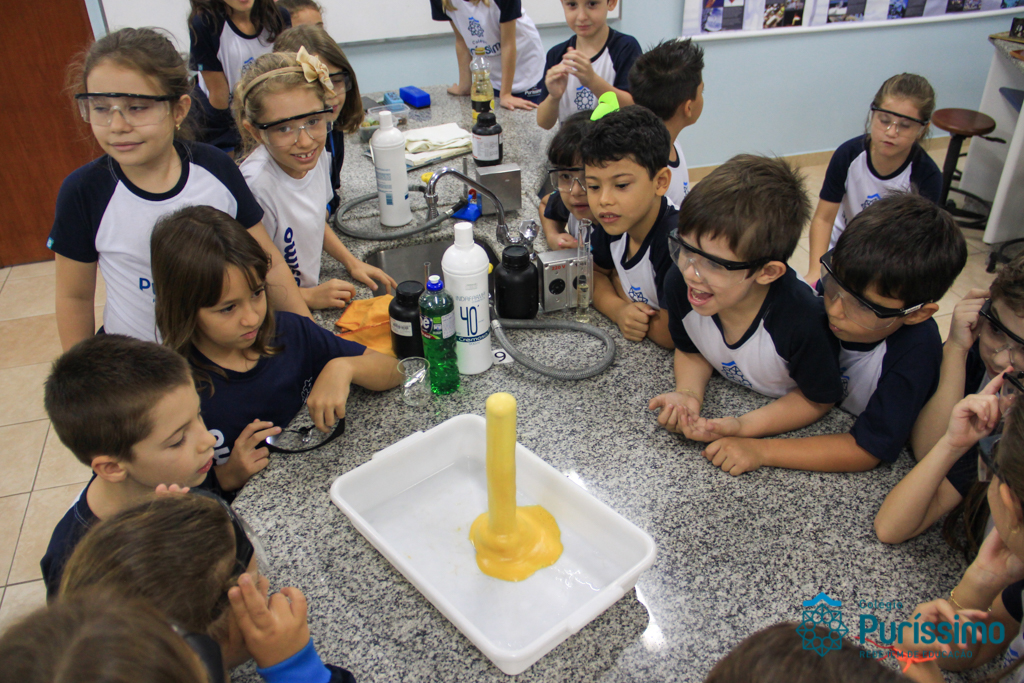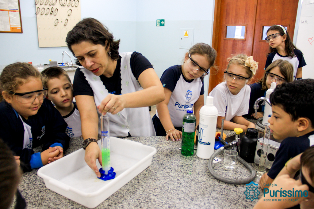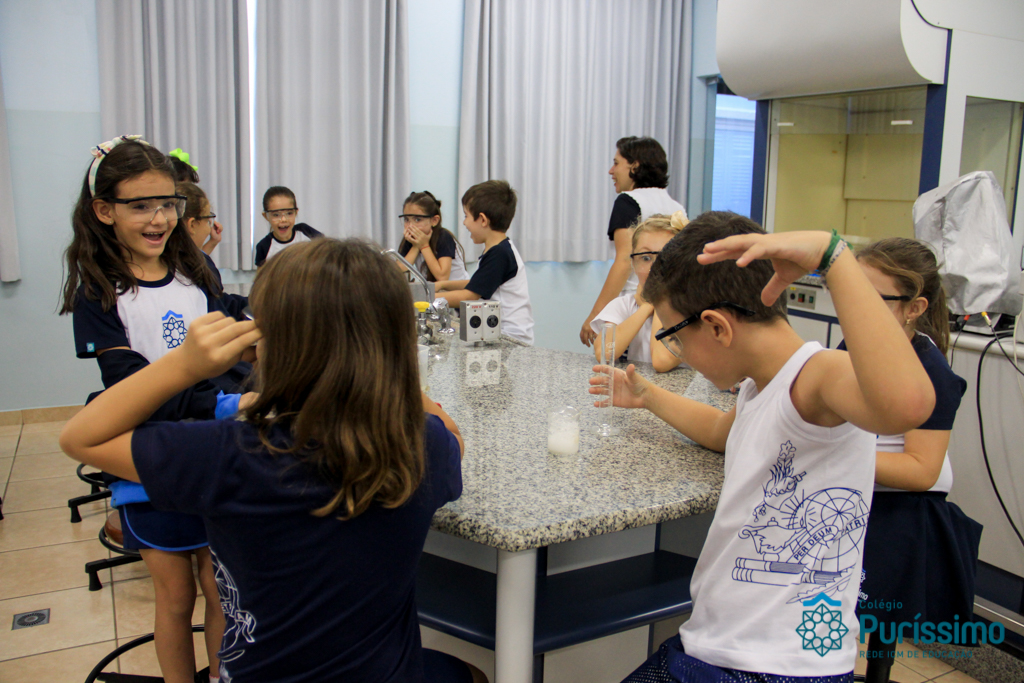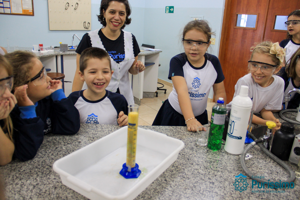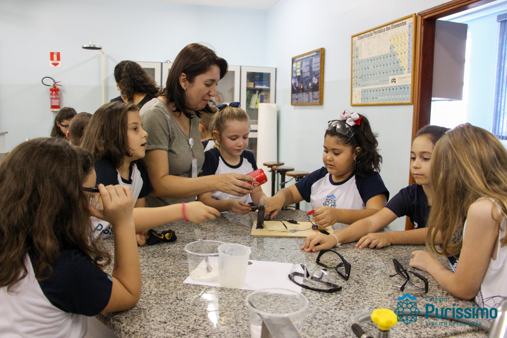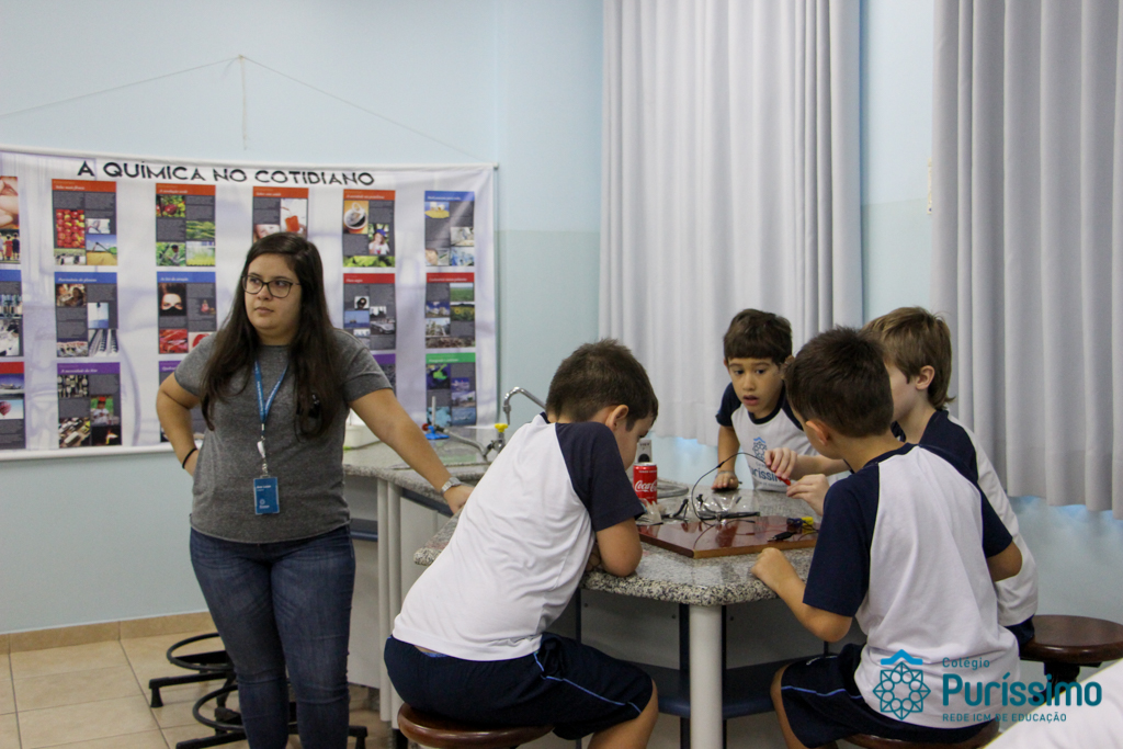 No início do mês de maio, os alunos dos 2ºs anos da manhã receberam a mãe Daniela Barsotti (professora de química do Ensino Médio do nosso Colégio), que é mãe do aluno Henrique Barsotti Saggioro do 2º 1M. A Daniela realizou com os alunos alguns experimentos de química e física no laboratório do nosso colégio.