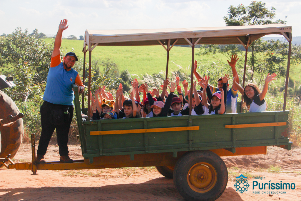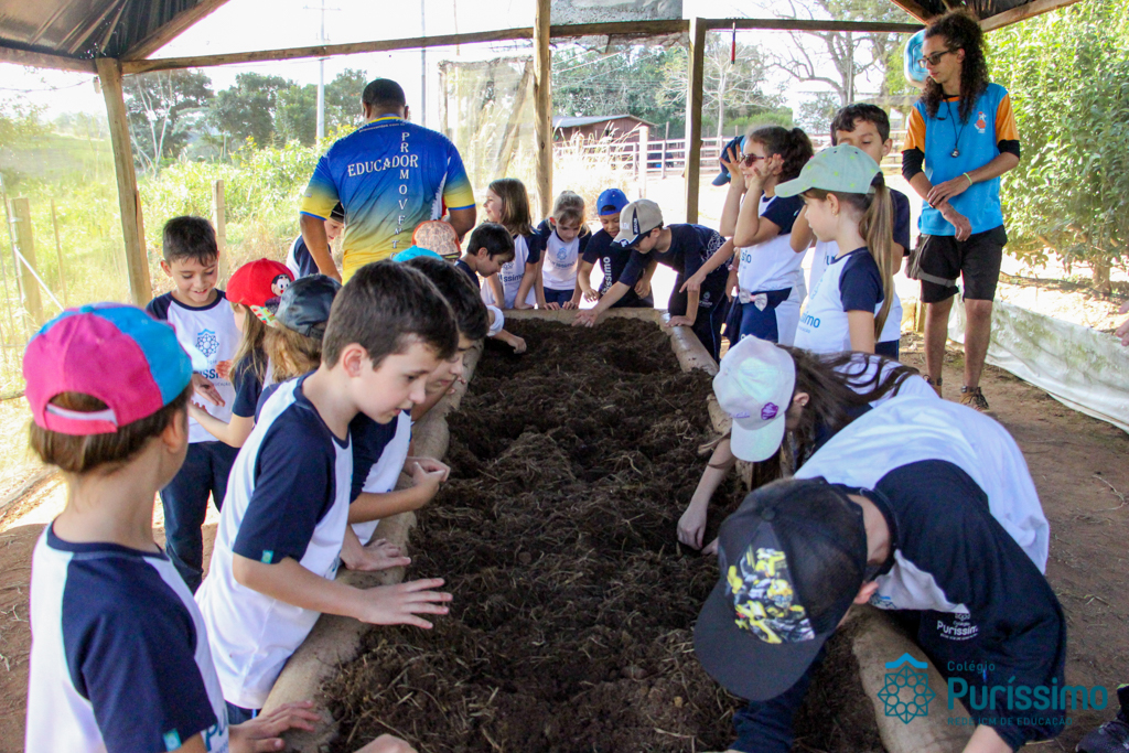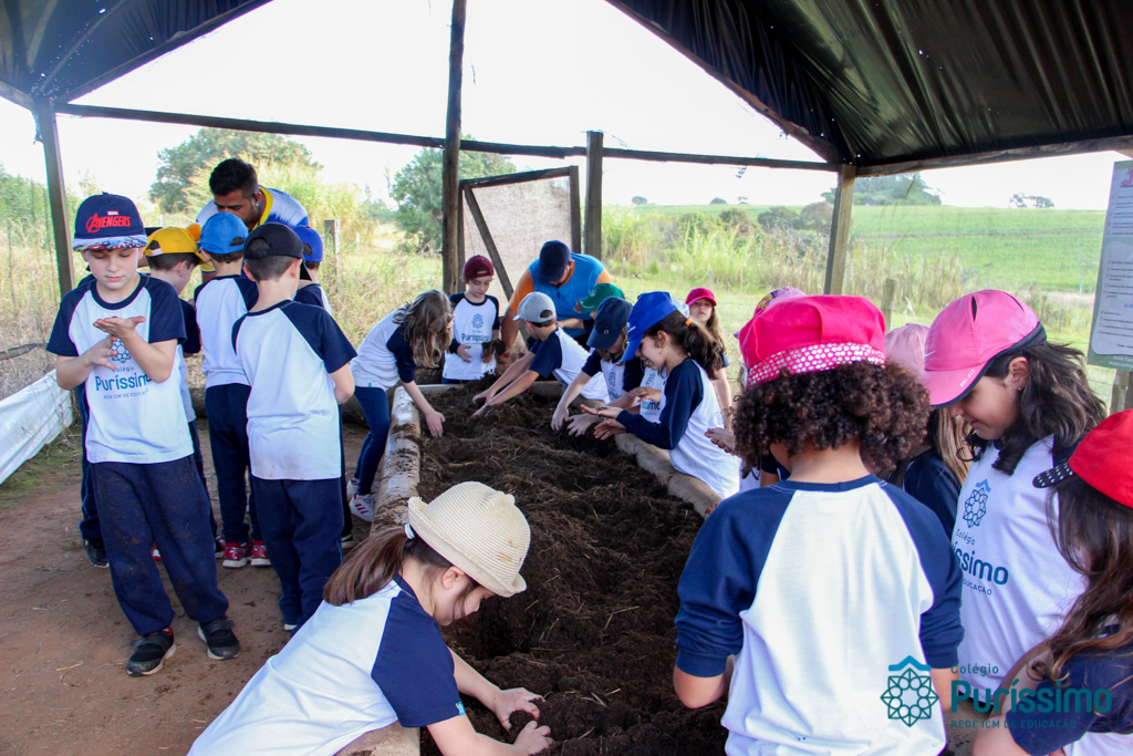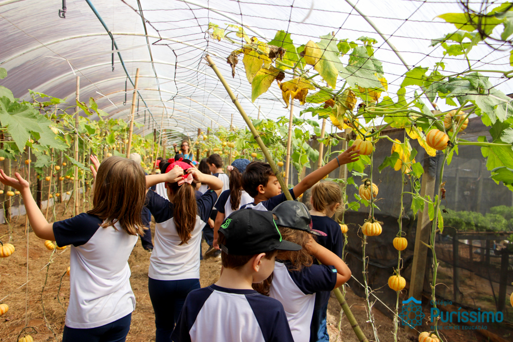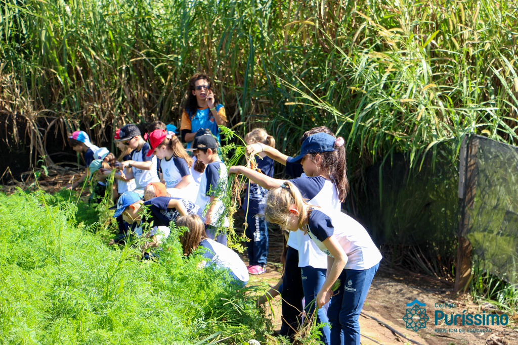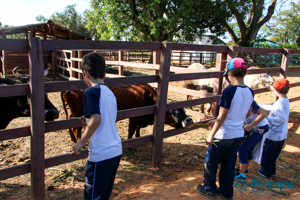 Ontem os 2ºs anos visitaram a fazenda Ituaú, em Salto (SP), conhecida como Terra de Gigantes. Durante o passeio, eles aprenderam sobre verduras e legumes, sobre alimentação saudável, sobre os diferentes tipos de cultivo, a adubar (durante o minhocário) e experimentaram alguns legumes e verduras cultivados na fazendo na hora do almoço. Eles também tiveram a oportunidade de plantar sementes e mudas, colher cenouras para alimentar os coelhos da fazenda e alimentar as mini vacas.