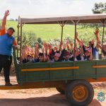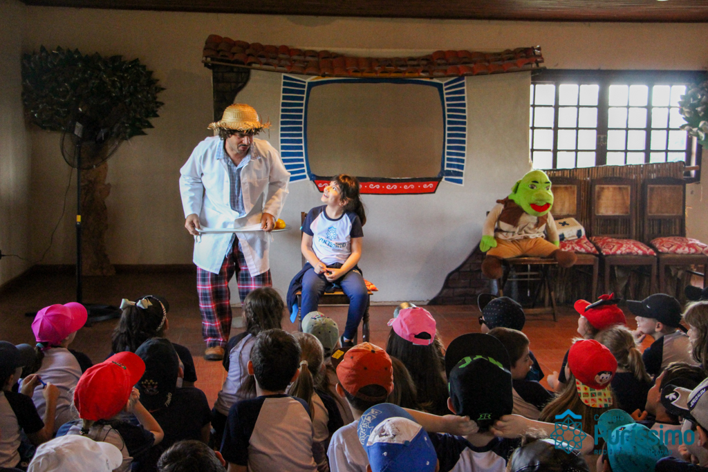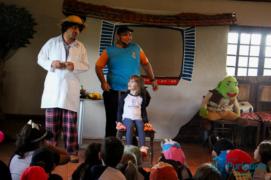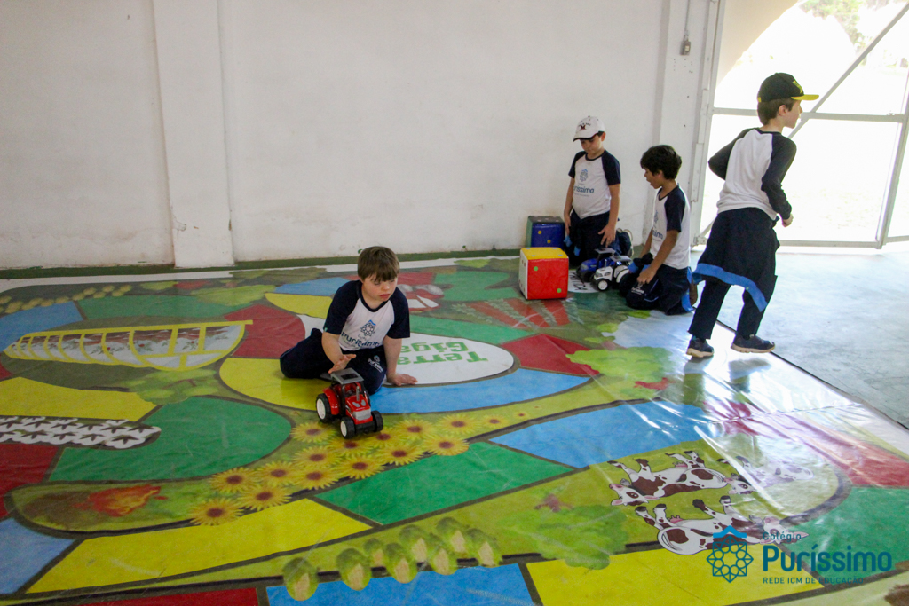 Além disso, eles participaram de um teatro muito divertido com o professor Abobrinha, andaram de trator, desceram em uma tirolesa, brincaram nos jogos gigantes e testaram os conhecimentos adquiridos ao longo do dia em um divertido labirinto.